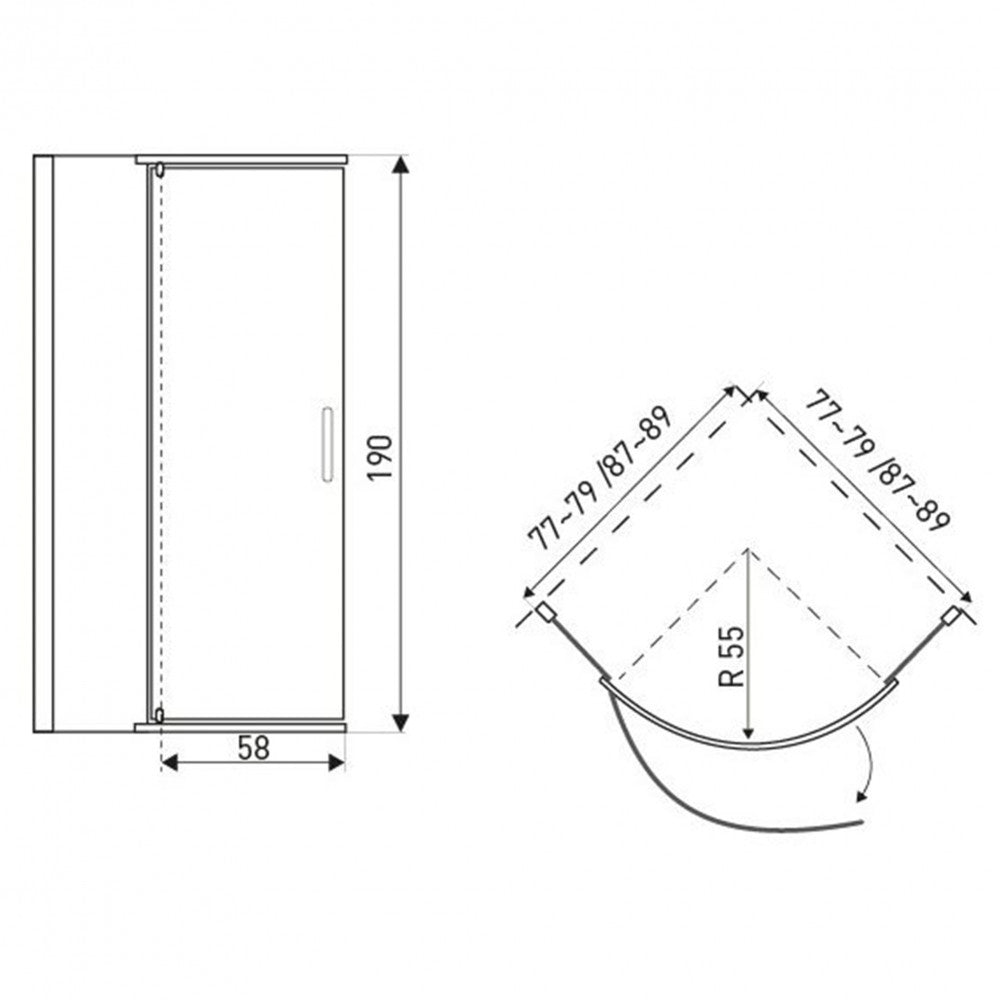 A zuhanykabin 6 mm-es biztonsági üveggel van ellátva. A mérete 79x79x190 cm. Univerzális jobb vagy bal oldali ajtó beszerelési lehetőség. A zuhanykabin üvege vízlepergető védőbevonattal van ellátva. Egyszárnyú nyílóajtókkal rendelkezik. A szifon nem tartozék! A zuhanytálca 80x80x16 cm-es. A sugara 55 cm-es.