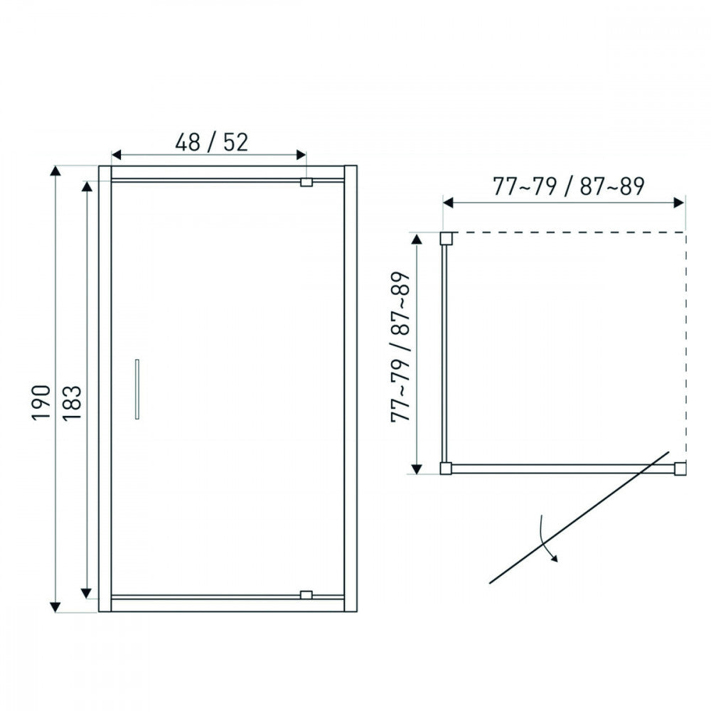 A Tomar zuhanykabin egyik fő előnye a 6 mm vastag, biztonsági edzett üveg. Az üveg grafit színű, matt csíkokkal, hogy a zuhanykabin mutatós maradjon. A négyzet alakú Tomar zuhanykabin előnyös tulajdonsága az univerzális beépítés lehetősége, jobbra és balra egyaránt.A fekete zuhanykabin grafitüveggel és matt csíkokkal biztosan jól mutat minden fürdőszobában. Ennek oka a fekete, félig matt felület, amely csodálatos látványt nyújt. A Tomar zuhanykabin tökéletesen fog kinézni fekete zuhanyszettel vagy arany csapokkal kombinálva.
