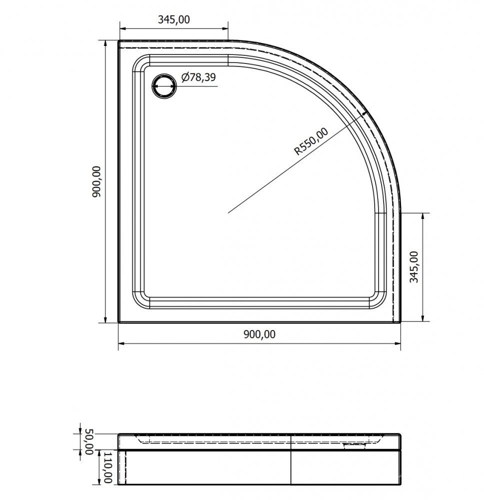 Vela Banyo MAJA szaniter akril zuhanytálca - ÍVES - 90 x 90 x 17 cm