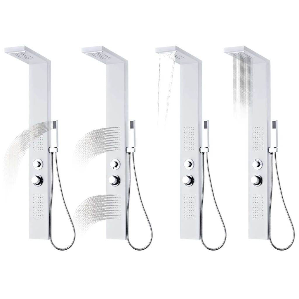 Ez a zuhanytorony tartós alumíniumból készült, melynek gyönyörű és szögletes tervezése van. 4 funkcióval van ellátva: esőztető, vízesés, masszázs és kézi tusolófej, melyek könnyedén kiválaszthatóak a forgatható gomb segítségével.