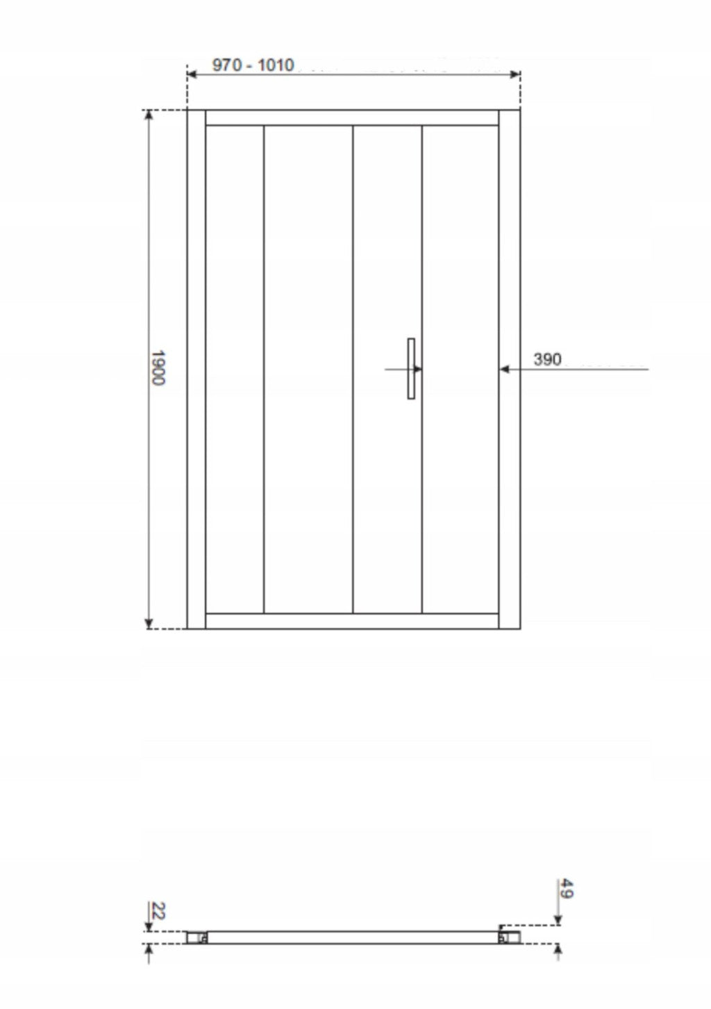 - Beépítés: univerzális bal-/jobbos nyitás; kompatibilis 100 × 80 cm-es tálcával vagy teljesen sík padlóra