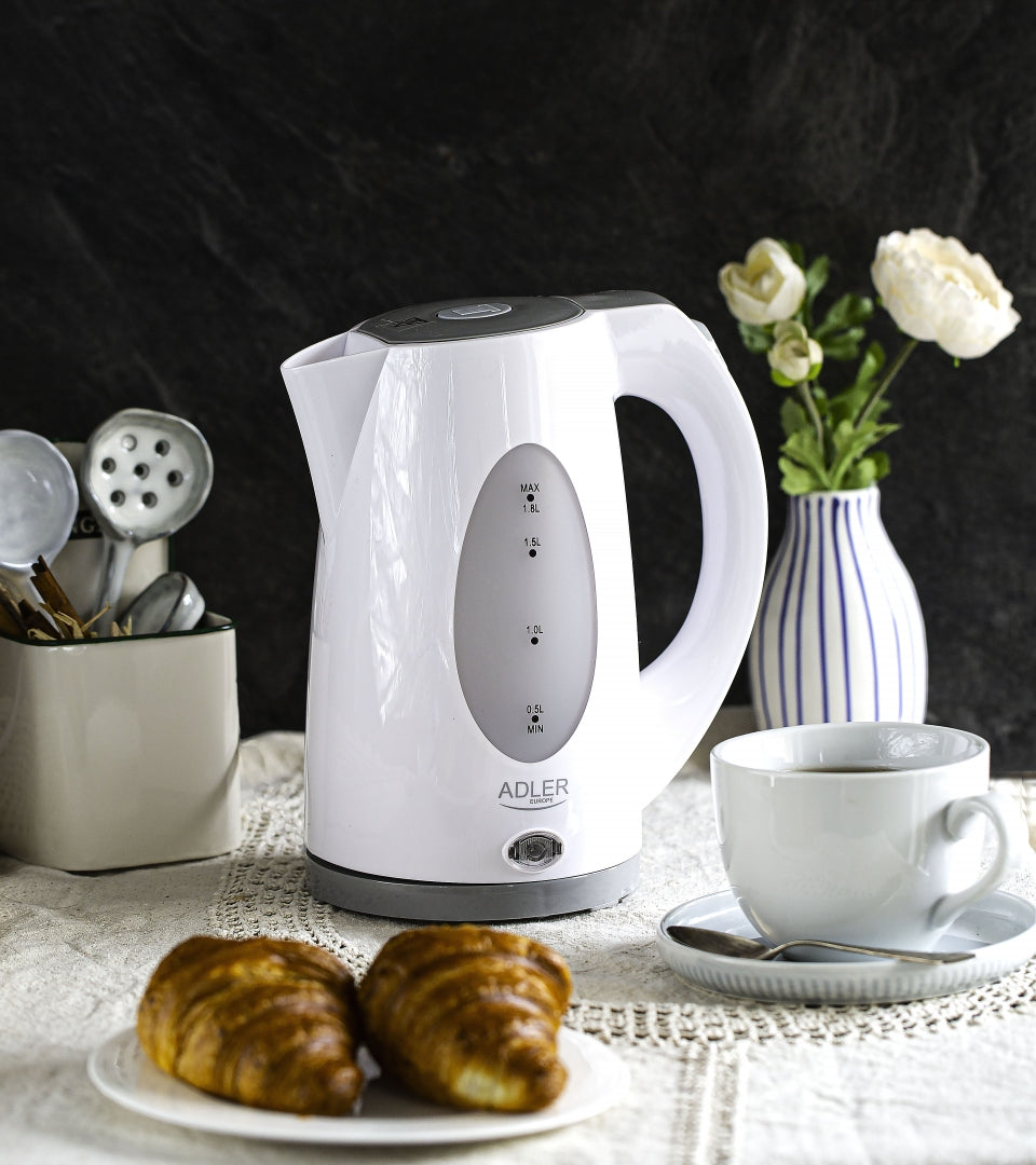 Teljesítmény 2200W-Kapacitás 1,8L-Rejtett fűtőszál-Száraz működés elleni védelem-Vízkőszűrő-Működés jelző fény-Vízszint kijelző-Automatikus kikapcsolás-Vezeték tároló-Capacity max: 1,8 L