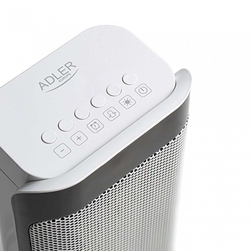 A készülék rendelkezik időzítővel, amely lehetővé teszi a munkaidő 1 és 8 óra közötti beállítását. Az LCD kijelző a kiválasztott hőmérsékletet a 10-35 ° C tartományban jelzi, a kiválasztott funkciók aktiválását.A ventilátor fűtése 1000 W vagy 2000 W teljesítménnyel melegszik, vízszintes rezgésfunkcióval rendelkezik a 45 ° -os tartományban,