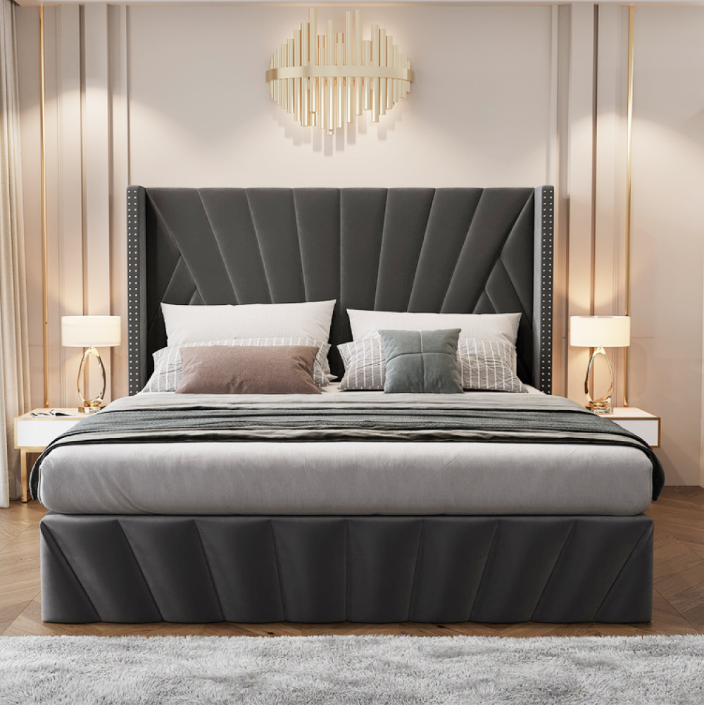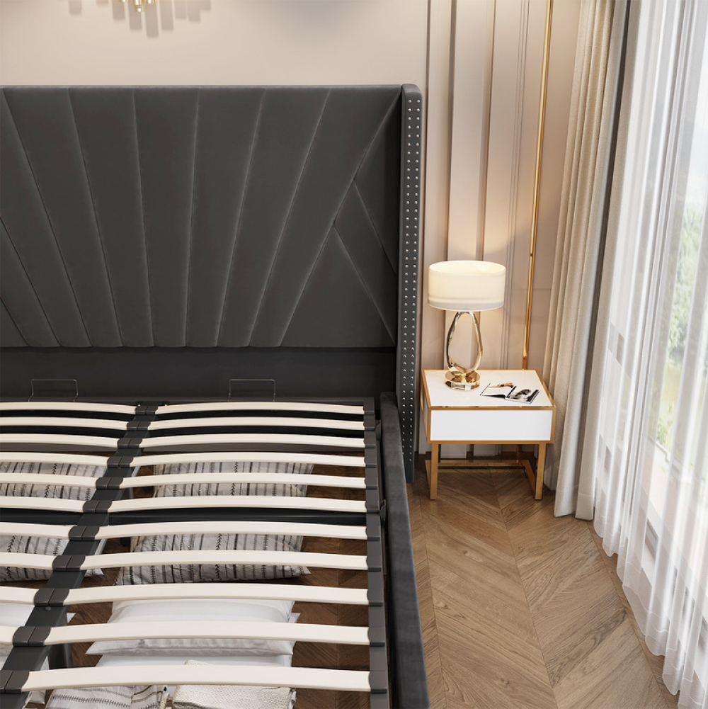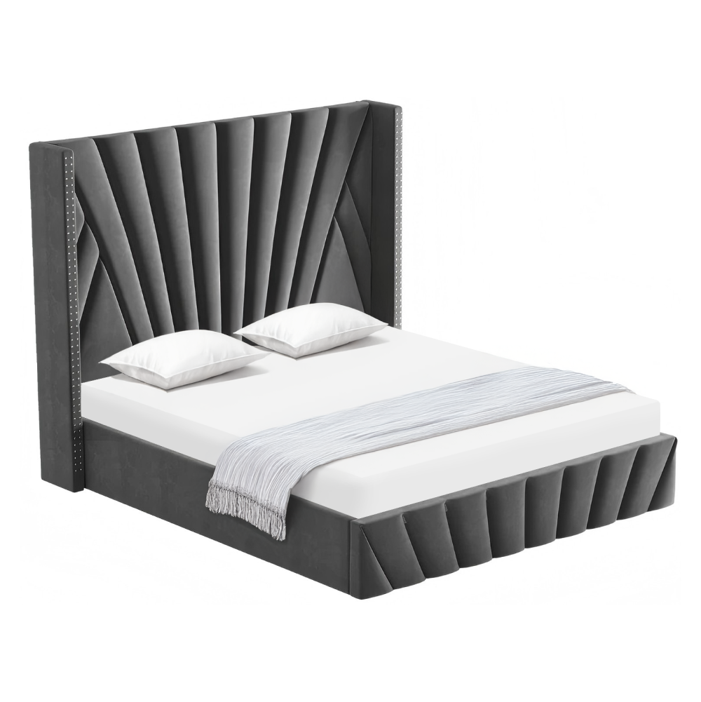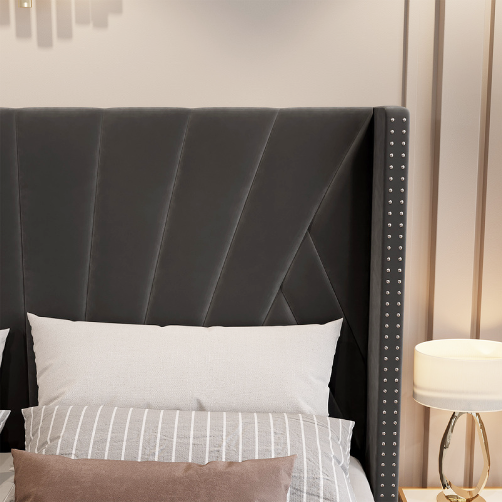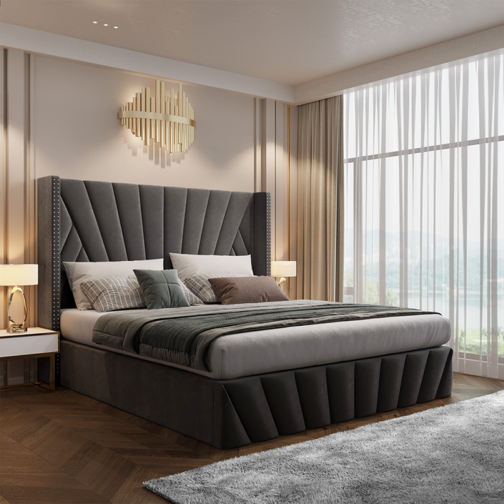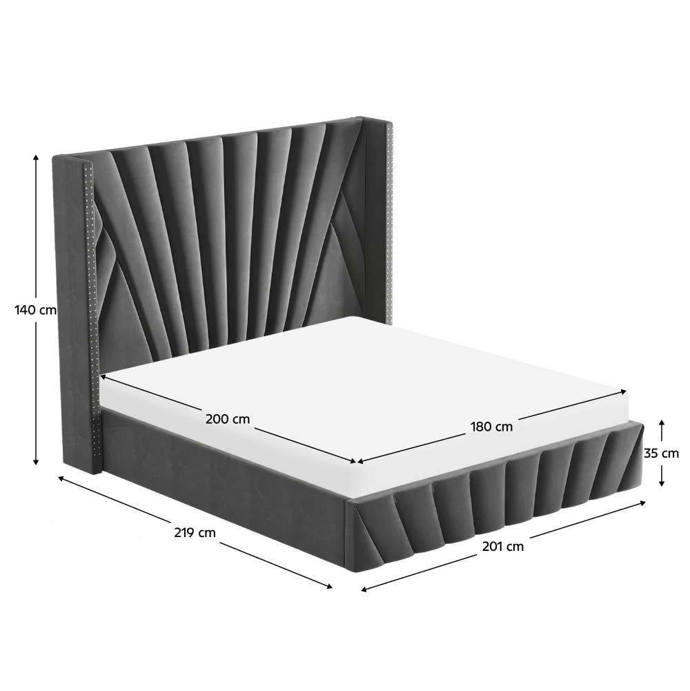 Ágy ráccsal, 180x200, sötétszürke Velvet szövet, PENELOPE