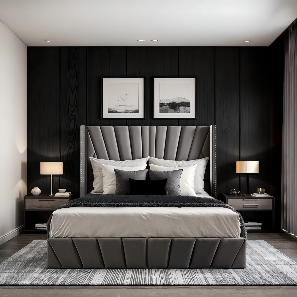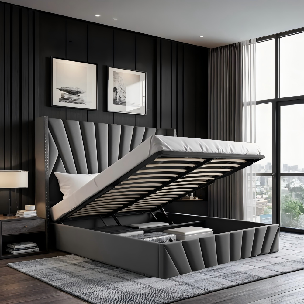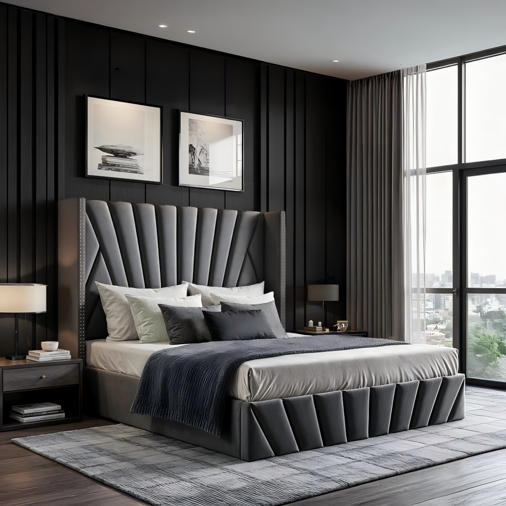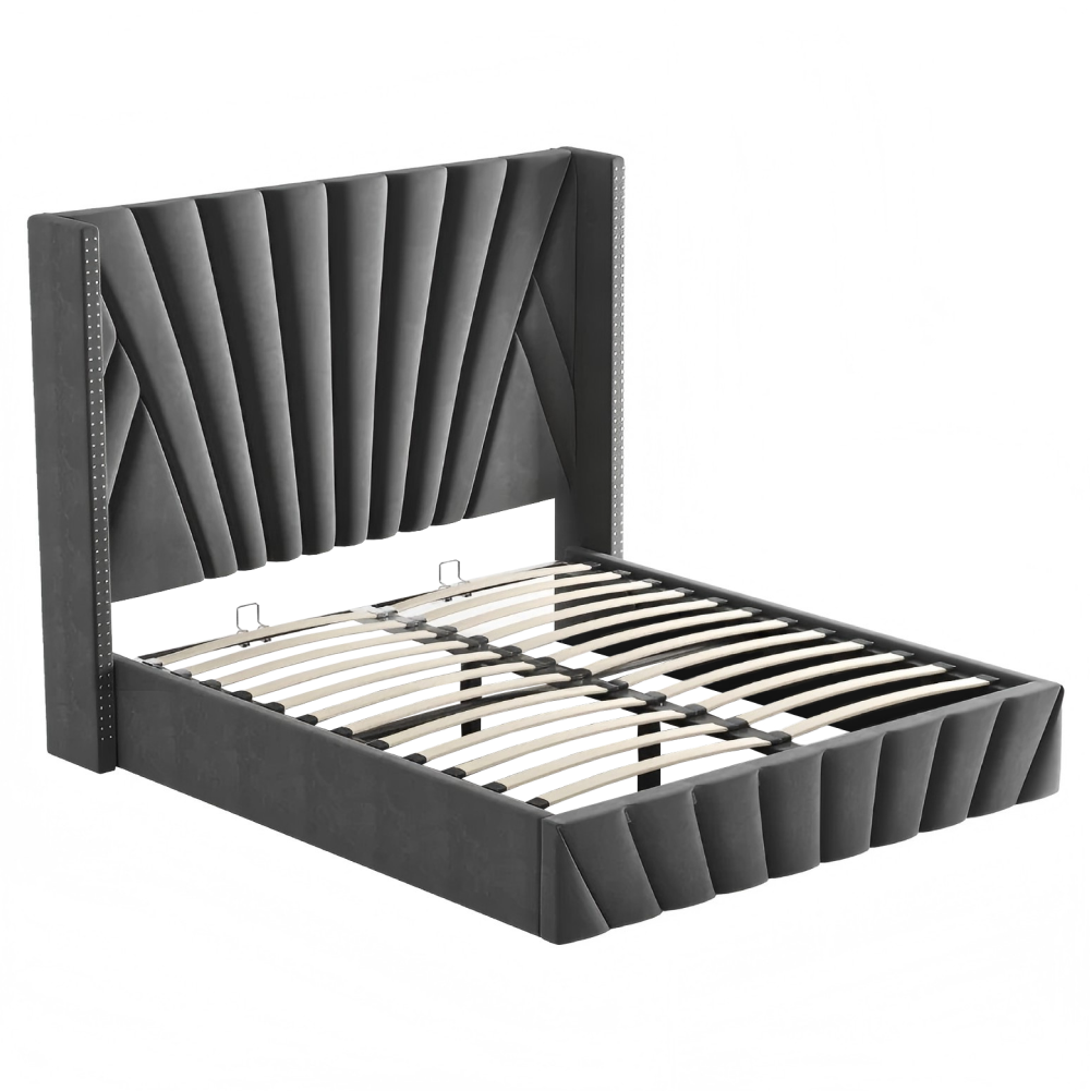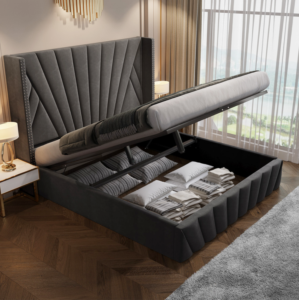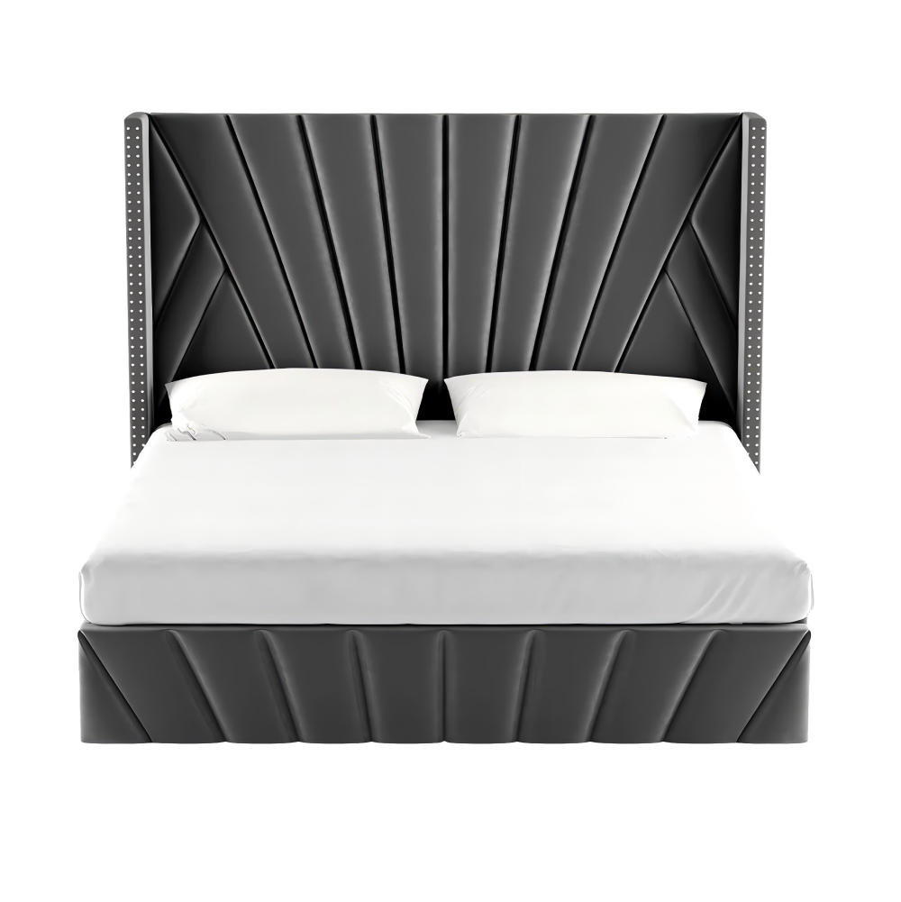 Ágy ráccsal, 180x200, sötétszürke Velvet szövet, PENELOPE