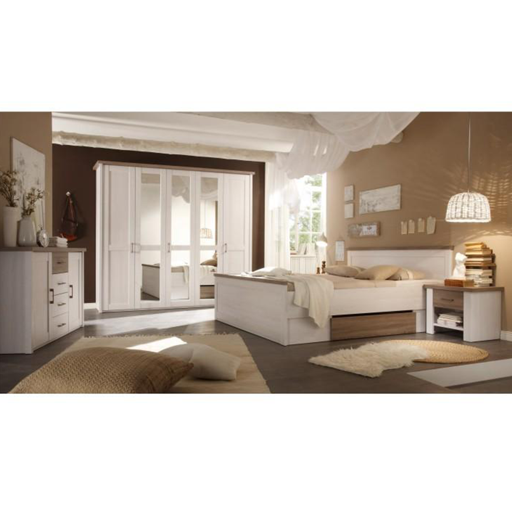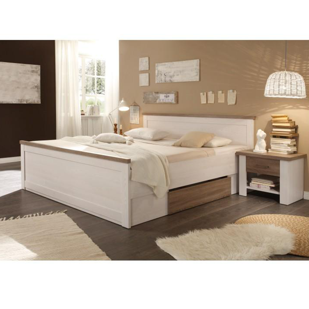 Ágykeret + 2db éjjeliszekrény, DTD fóliázott, sonoma tölgy trüffel/mandulafenyő fehér, LUMERA