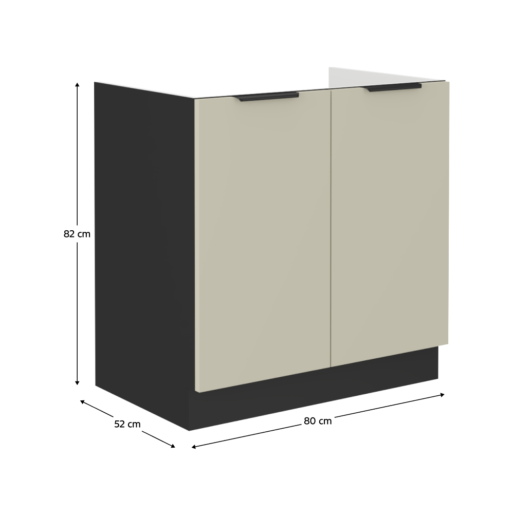 Az alsó szekrényeket az alsó sínnel együtt szállítjuk, asztallap nélkül.