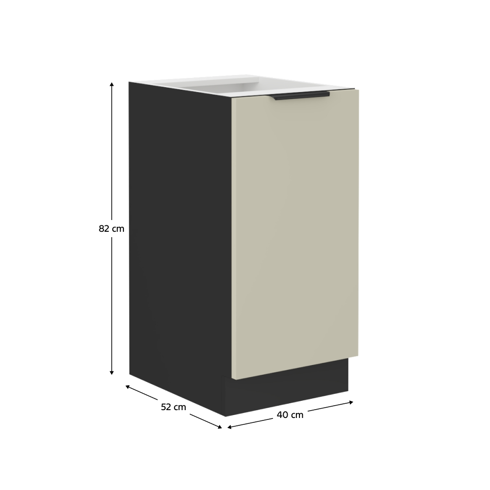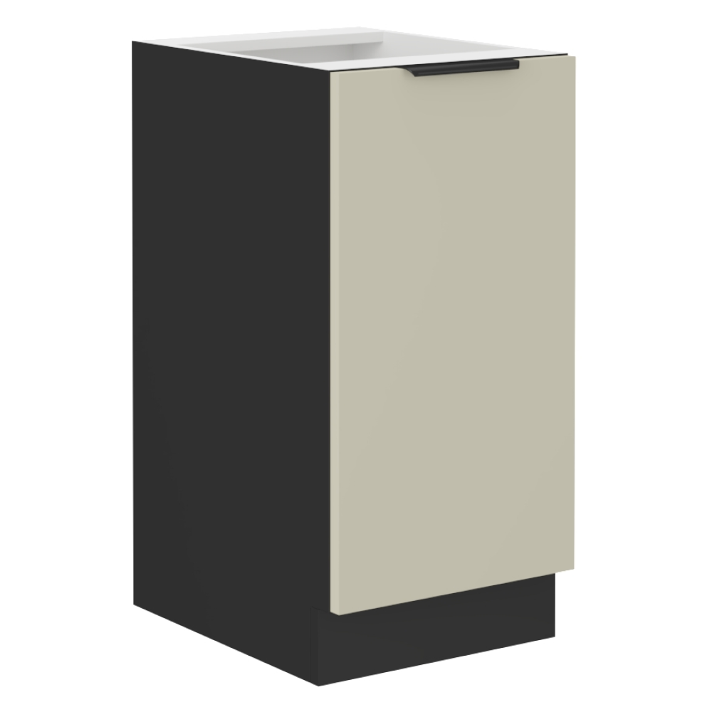 Az alsó szekrényeket az alsó sínnel együtt szállítjuk, asztallap nélkül.