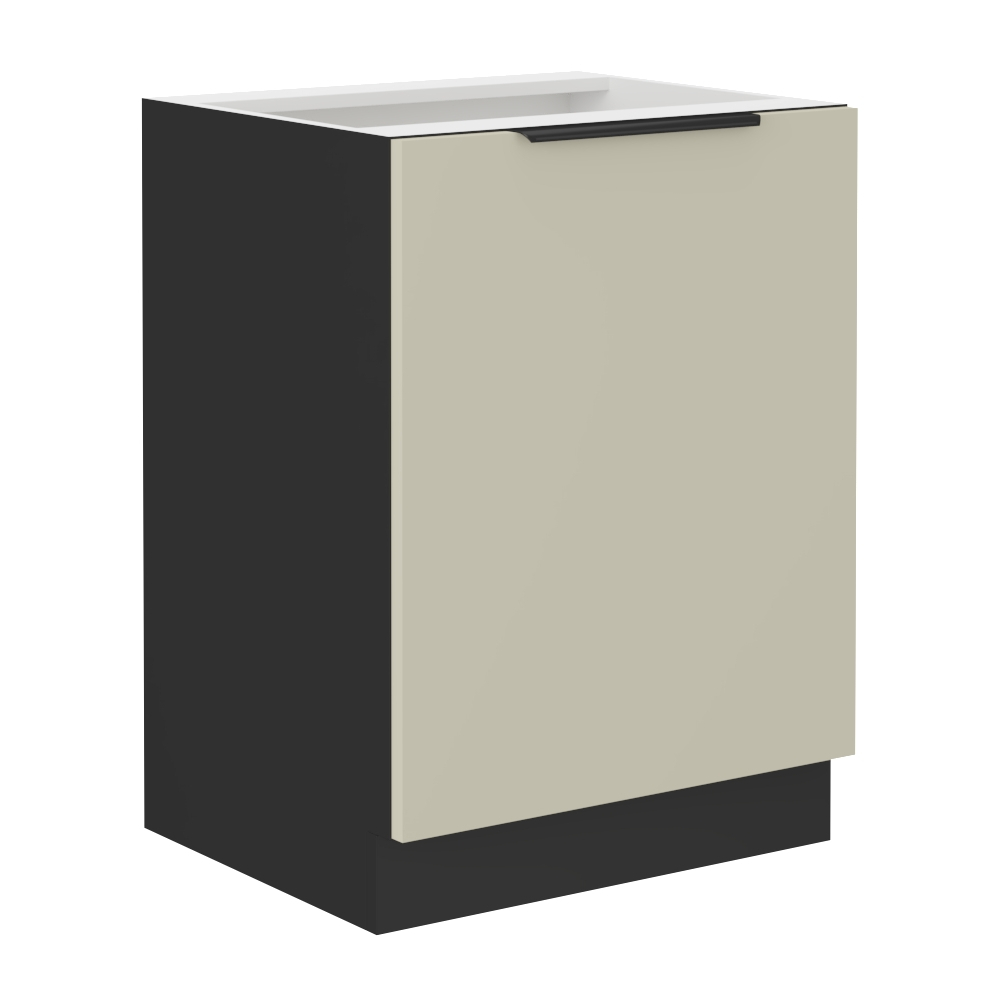 Az alsó szekrényeket az alsó sínnel együtt szállítjuk, asztallap nélkül.