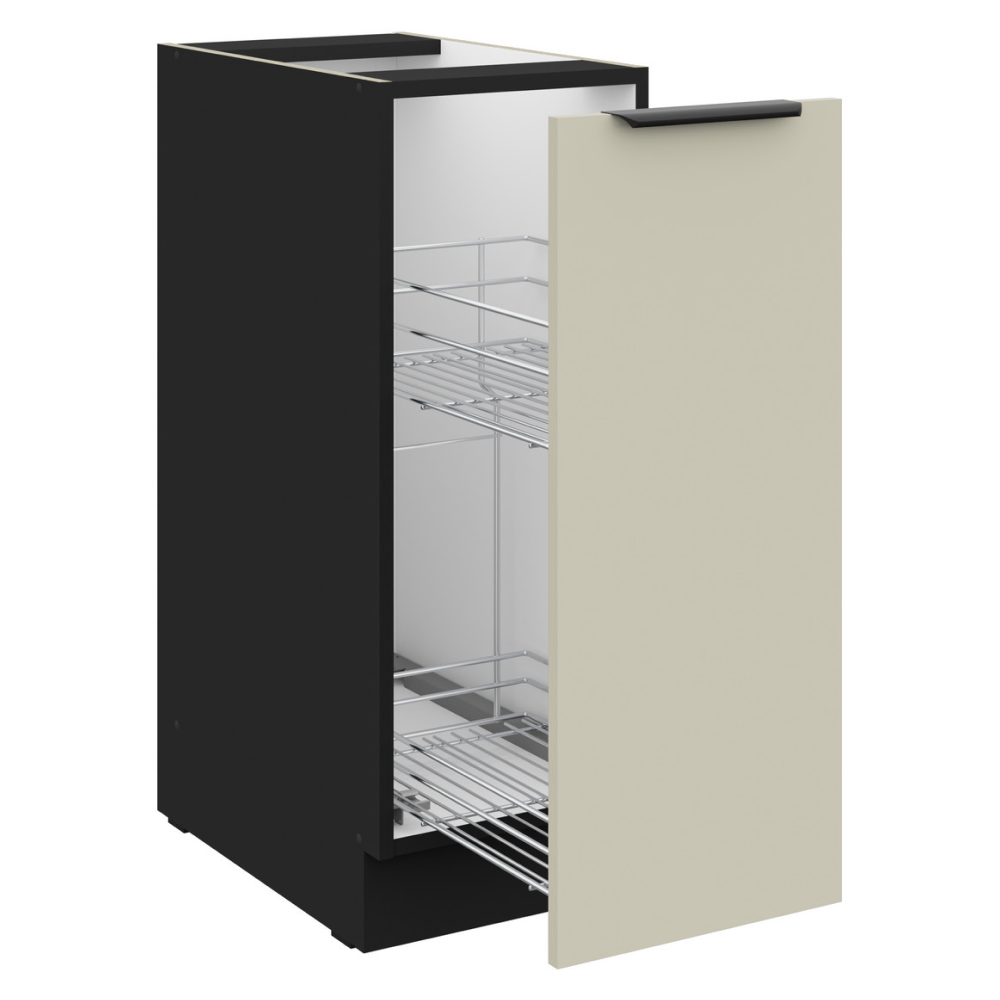 Az alsó szekrényeket az alsó sínnel együtt szállítjuk, asztallap nélkül.