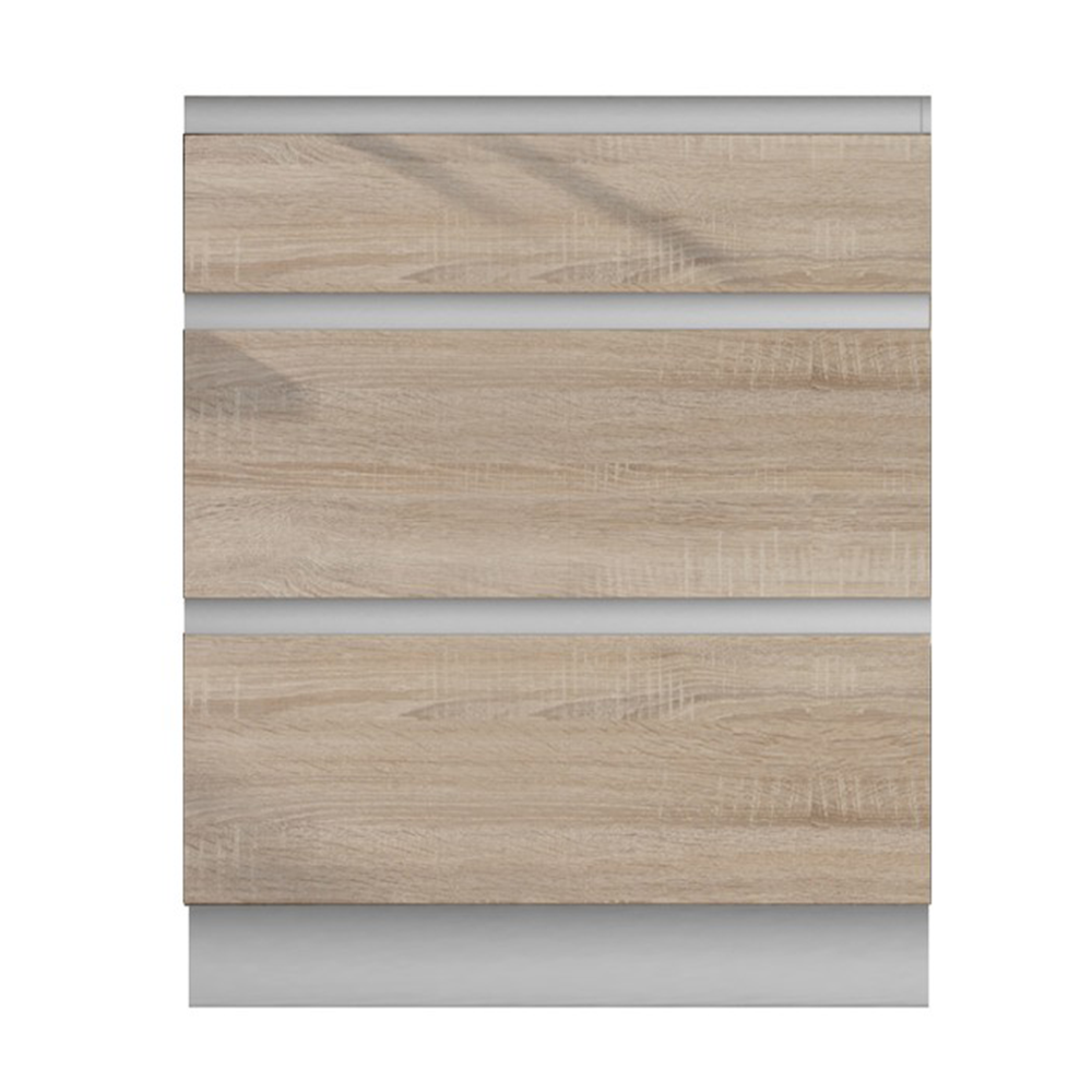 Háromfiókos alsószekrény az elemes konyhabútorból modern stílusban és változatban.