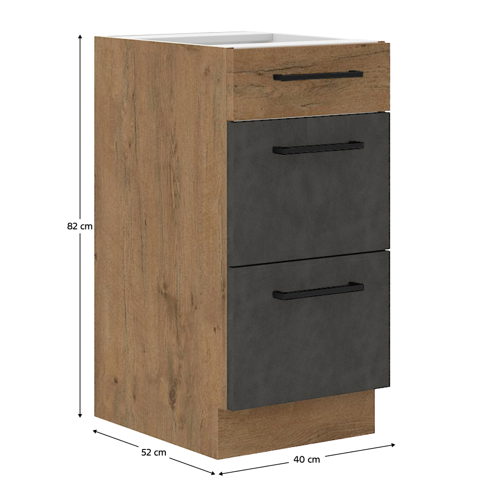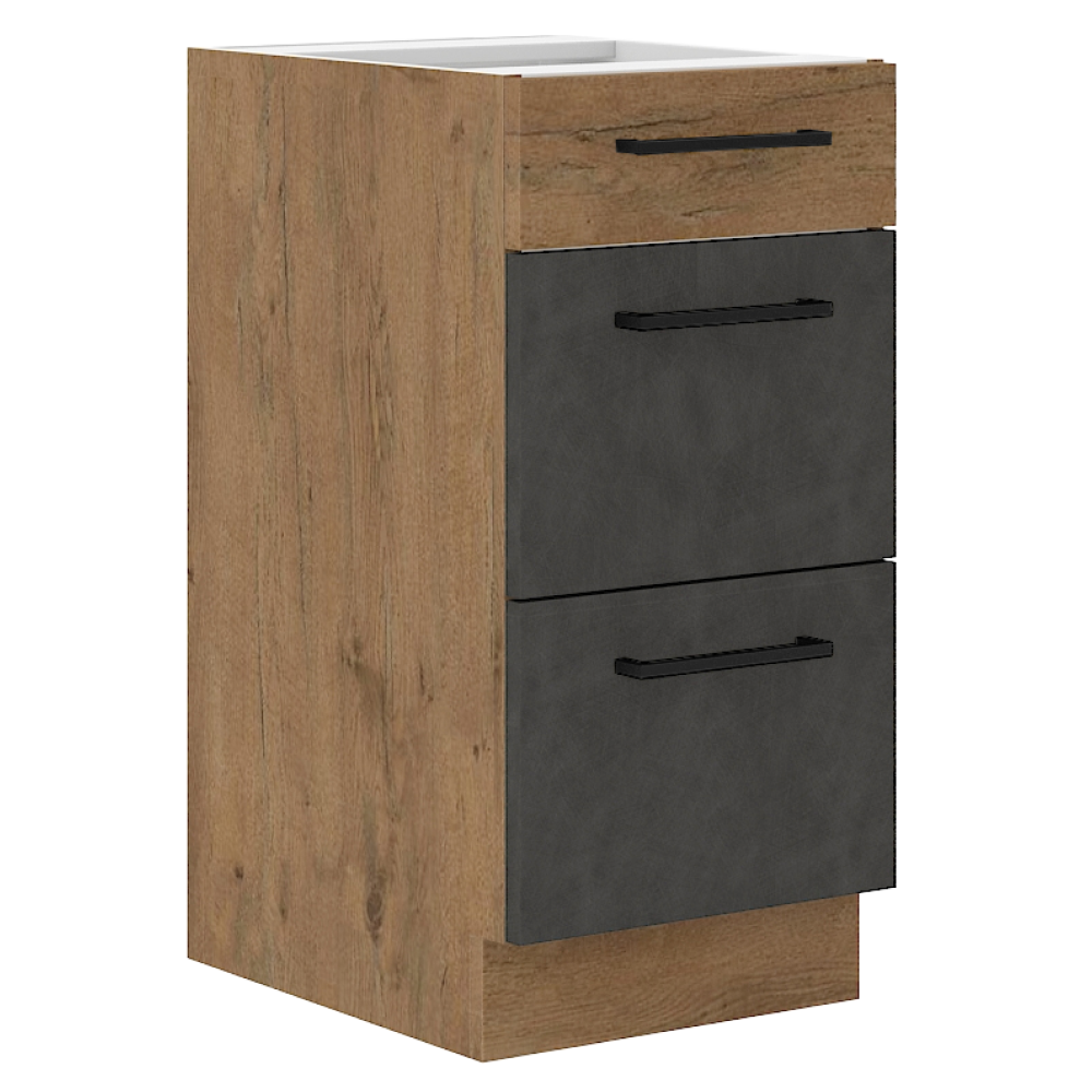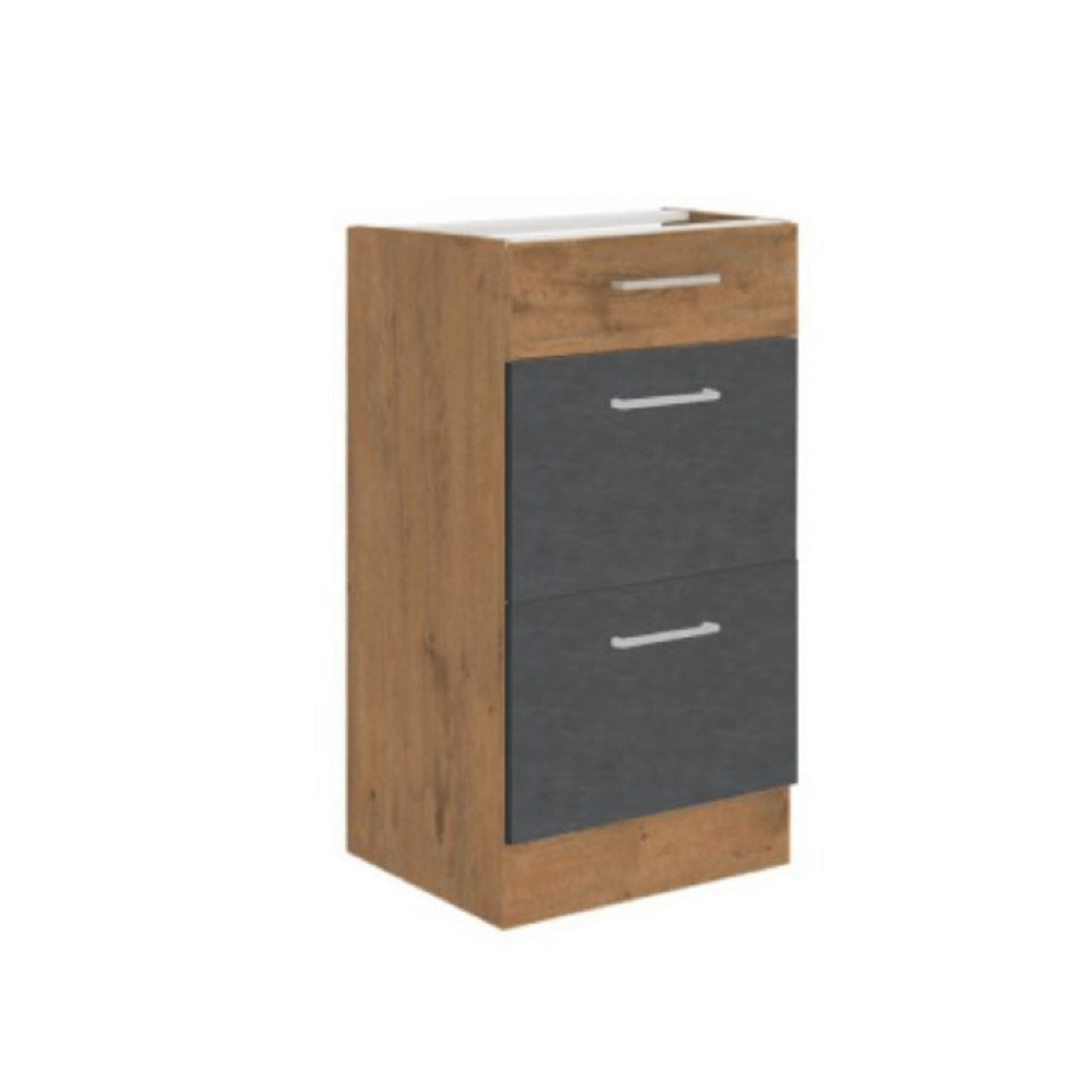 Alsószekrény, szürke matt/tölgy lancelot, VEGA 40 D 3S BB