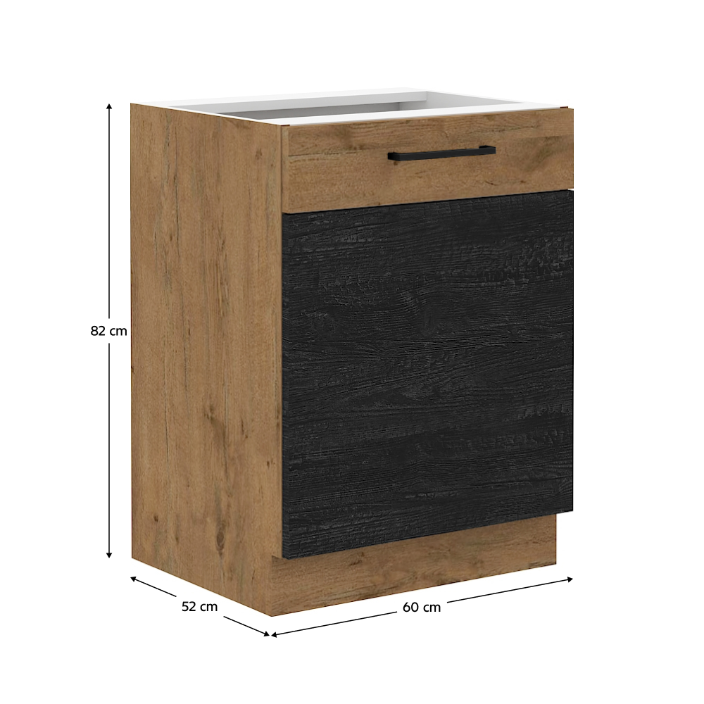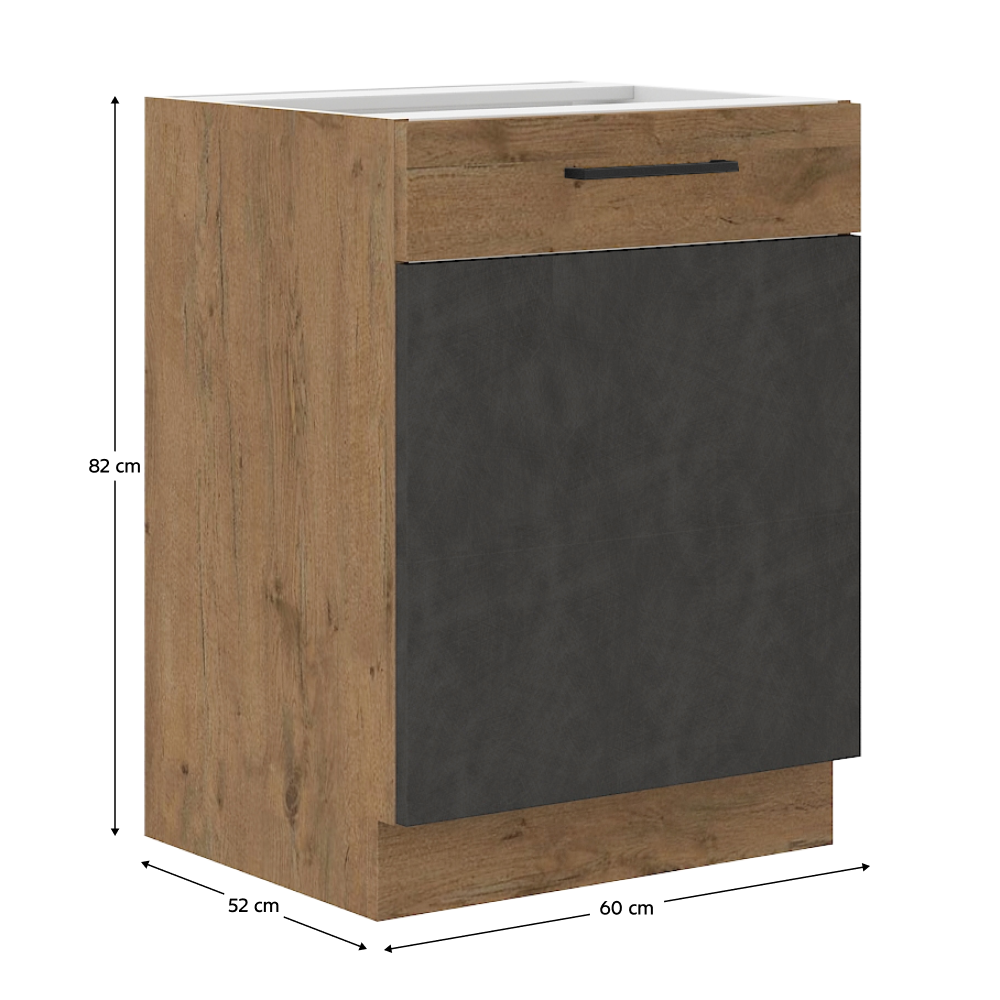 Alsószekrény, szürke matt/tölgy lancelot, VEGA 60 D 1F BB