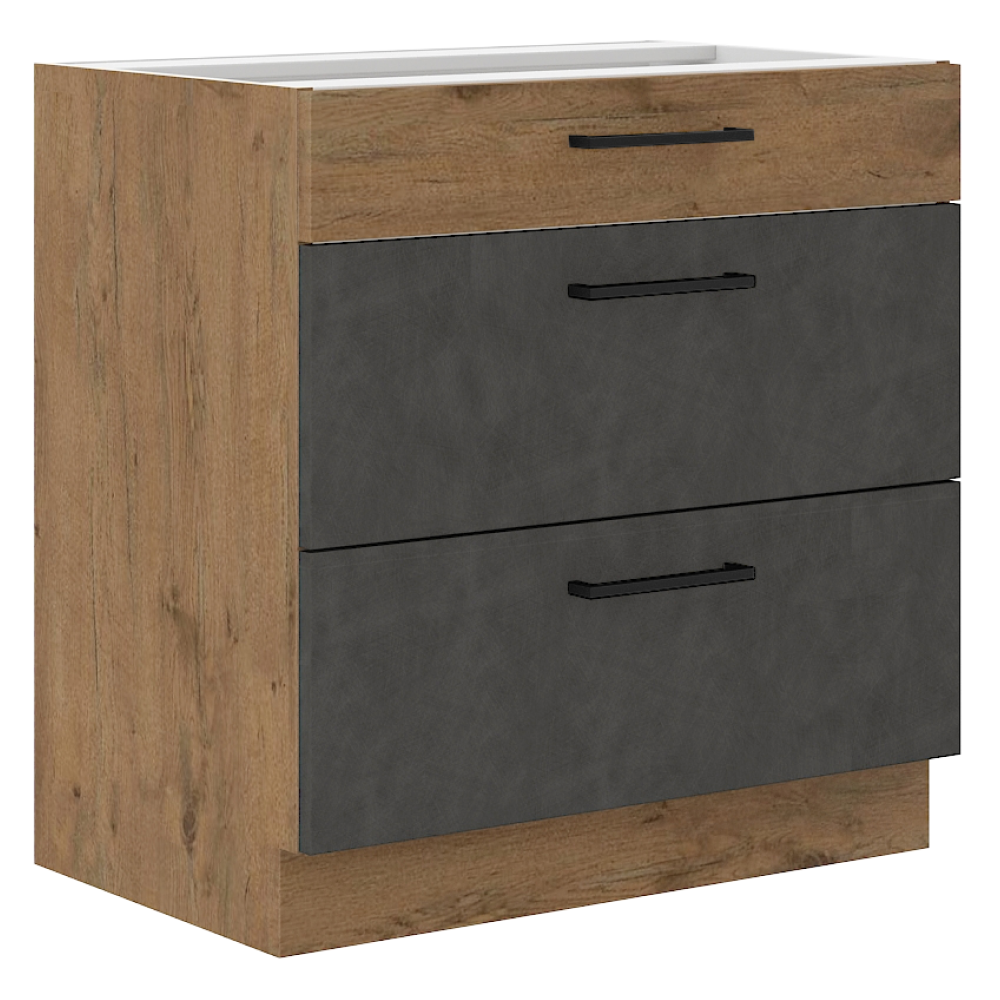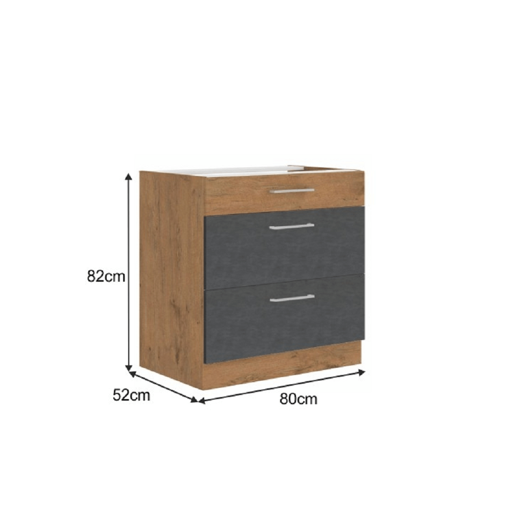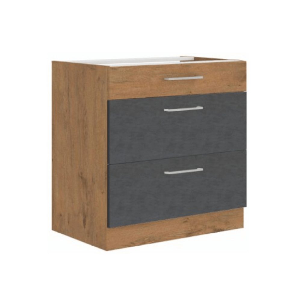 Alsószekrény, szürke matt/tölgy lancelot, VEGA 80 D 3S BB