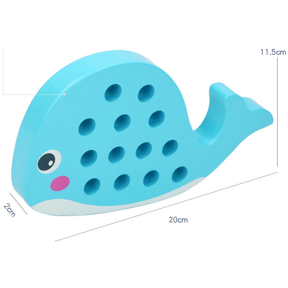 Ez a bálnás fűzős fajáték egy kiváló választás a kisgyermekek számára, akiknek szeretnék fejleszteni finommotorikus készségeiket, kéz-szem koordinációjukat és képzelőerejüket. Ez a játék faanyagból készült, ami garantálja a tartósságot és a biztonságot.