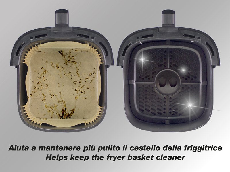 Univerzális sütőpapír olaj nélküli sütőkhöz-50db/csomag-Kompatibilis minden, 5-10L kapacitásu air fryer-hez. A sütőpapír tapadás mentes, olaj taszító, vízálló és biologialiag lebomló. Használható tradicionális sütőkben is.