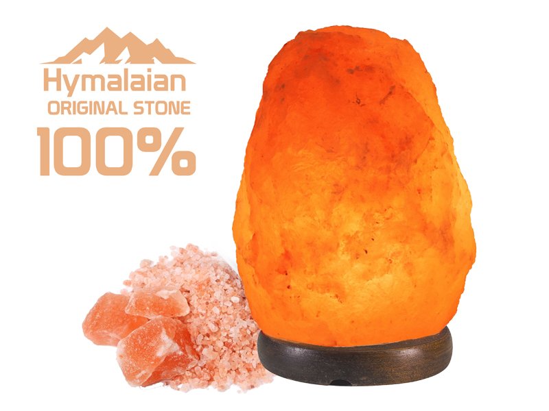 Természetes sókő lámpa, a Himalájából bányászva, kézzel megmunkálva és vágva; a kézi vágás és feldolgozás minden darabnak egyedi formát és árnyalatot ad.
