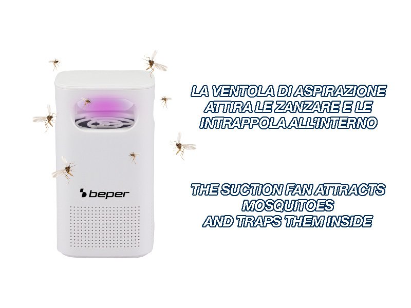 A szívóventilátor vonzza a szúnyogokat, és befogja őket. Kicsi, hordozható és csendes. Könnyen tisztítható a kivehető és mosható tálcának köszönhetően. Vegyszerek használata nélkül vonzza a rovarokat, amelyek károsak a környezetre. Belső használatra alkalmas. A mellékelt USB kábellel működik.
