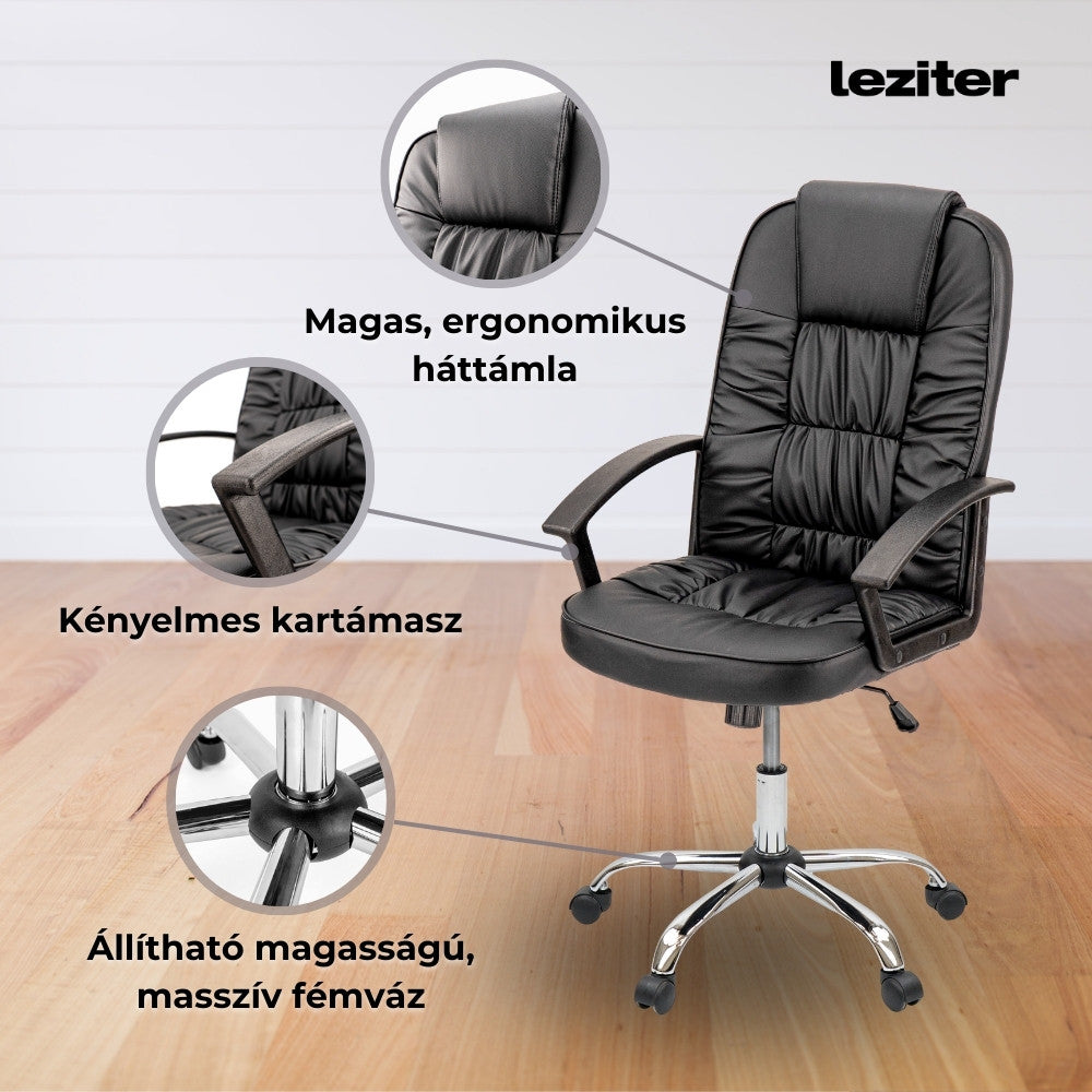 A Bristol szék magas háttámlával rendelkezik, ami különösen hasznos azoknak, akik hosszú órákon át ülnek az asztaluknál. A magas háttámla kényelmes támaszt biztosít a hát alsó és felső részének, így segít megelőzni a hát- és nyakfájdalmakat, amelyek gyakran jelentkezhetnek a hosszú ülés során. Emellett az ergonomikus kialakítás támogatja a megfelelő testtartást, amely hozzájárul a hatékony és koncentrált munkavégzéshez. A Bristol forgószék kiváló minőségű párnázattal rendelkezik, amelyet a legjobb minőségű anyagokból készítettek. A szék ülés magassága állítható, a kényelmes munkapozíció érdekében.