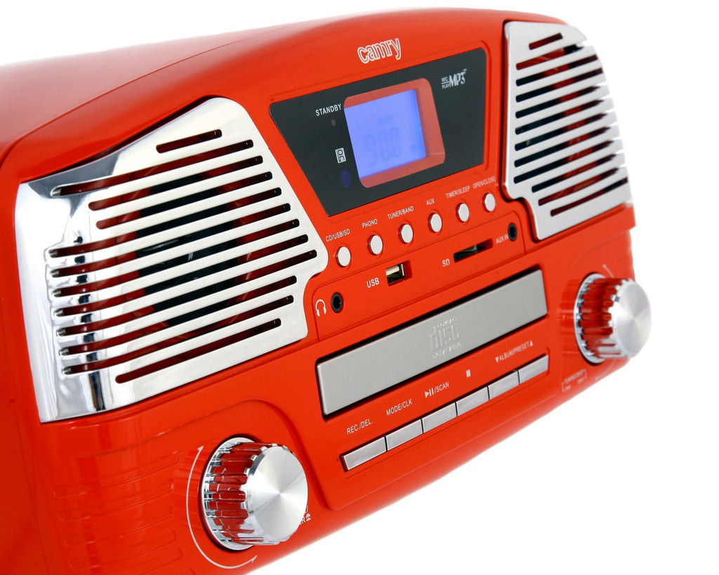 A CR1134R a tökéletes kombinációja a modern varázslatnak és klasszikus technológiának. A készülék három sebességgel rendelkezik (33, 45, 78 RPM) + egy beépített AM/FM rádióval. A lejátszó könnyedén csatlakoztatható számos más készülékhez is, hála AUX bemenetének, SD/MMC befogadó képességének és USB csatlakozó felületének. Emellett a készülék használata egyszerű a nagy LCD kiejlzőnek és a mellékelt távirányítónak hála. A CR1134R egyik legnagyobb előnye, hogy zene rögzítésre is képes rádióból, vagy más, már kész felvételekből MP3 formátumba. Ennek a terméknek hála nem kell többé feláldoznia se a klasszikus technológia szépségét, se a modern megoldásokkal járó előnyöket.