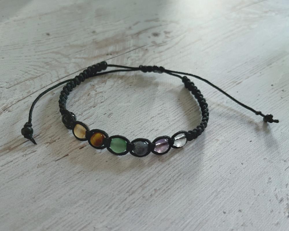 Csakra karkötő ásványai: Ónix, karneol, tigrisszem, aventurin, szodalit, ametiszt, hegyikristály