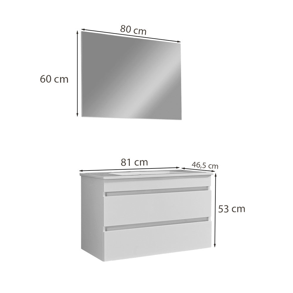 Az alsó bútorhoz emellett tartozik egy 80-as Cube tükör is. A termék magasfényű festett fronttal és korpusszal emellett színben passzoló élzárókkal van ellátva. A fürdőszoba bútor felfüggesztett kivitelben kapható.