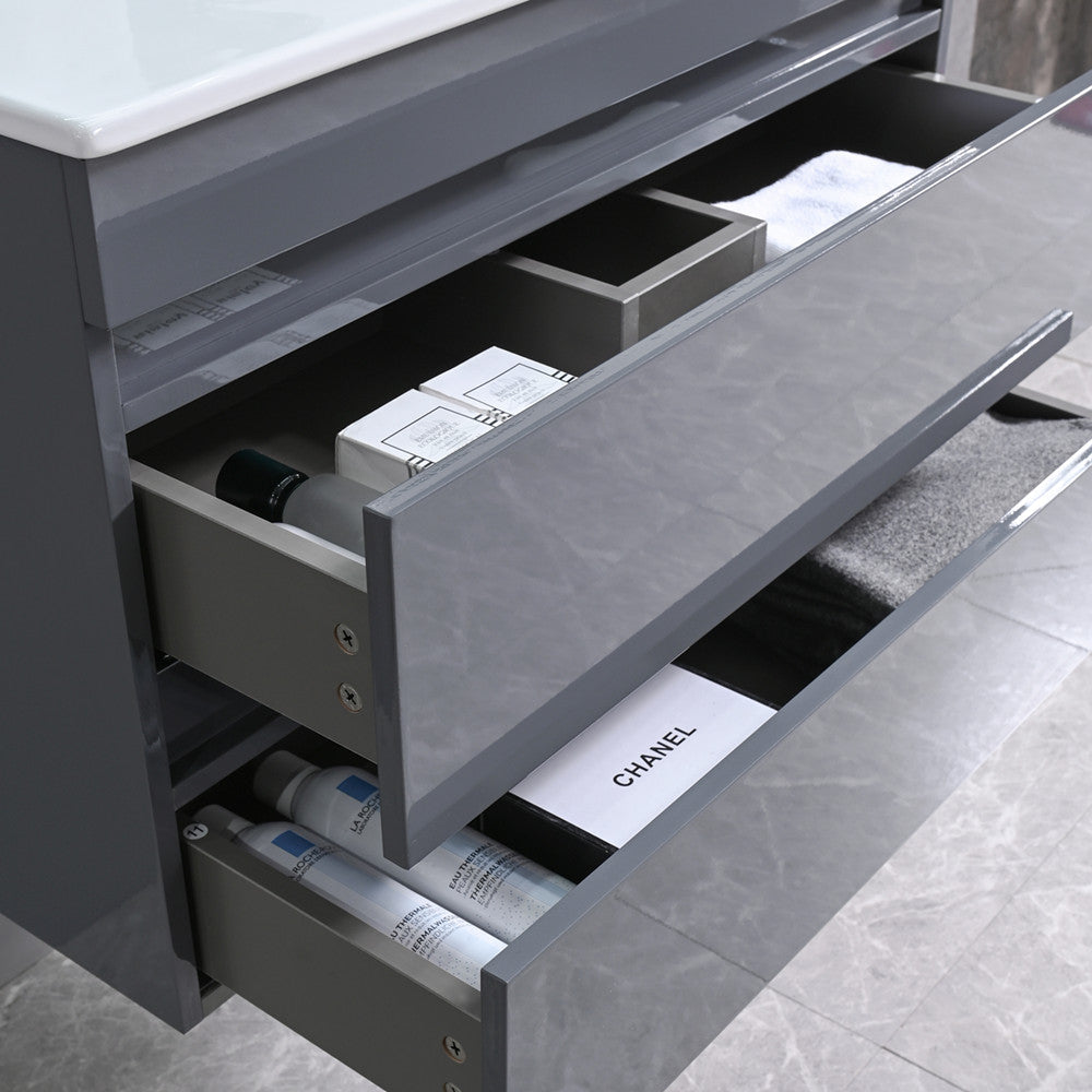 A funkcionalitás mellett természetesen a bútor megjelenésére is nagy figyelmet fordítottak. Magasfényű antracitszürke színének és letisztult modern vonalainak köszönhetően harmóniát teremt az összes fürdőszoba hangulatában.