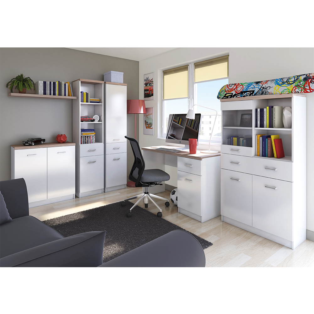Modern elemes rendszer TOPTY alkalmas a nappaliba, előszobába, irodába vagy dolgozószobába.