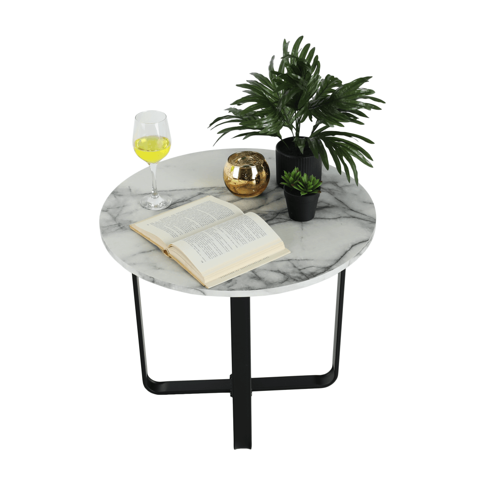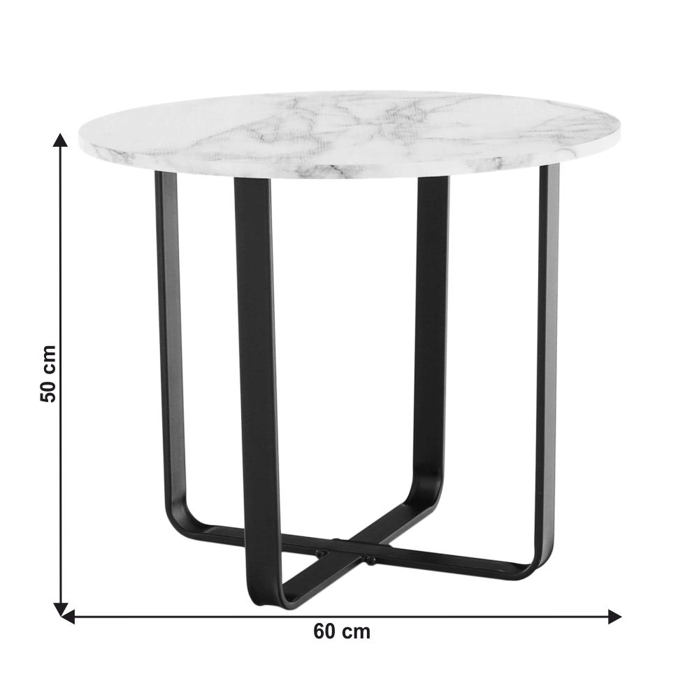 Anyag: MDF/fém Szín: fehér márvány/fekete Méretek (átmérő x V): 60x50 cm Dizájn Bontásban szállítva.