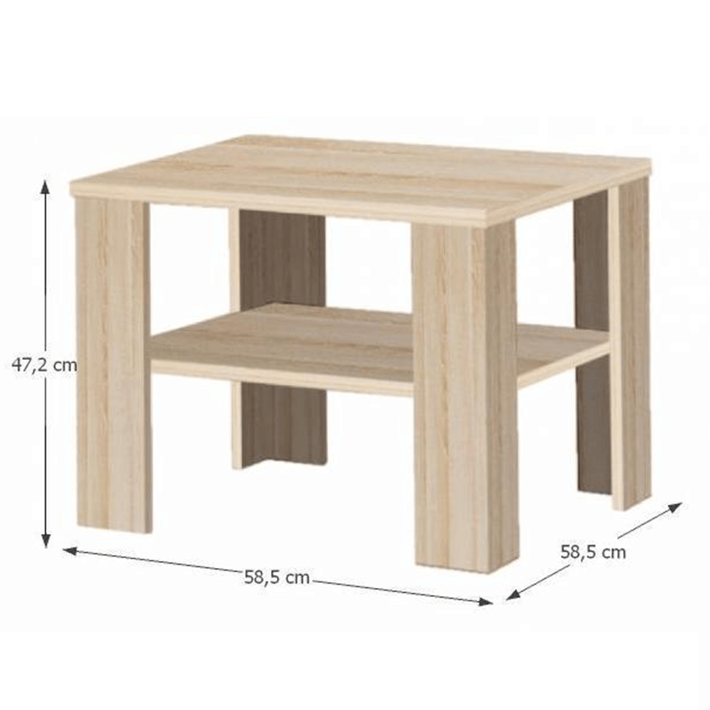 Dohányzóasztal Anyag: Fóliázott DTD Szín : sonoma tölgy Méretek (SzéxMéxMa): 58,5x58,5x47,2 cm Anyag vastagsága felsőlap: 22 mm Váz vastagsága: 16 mm Szétszerelve szállítjuk