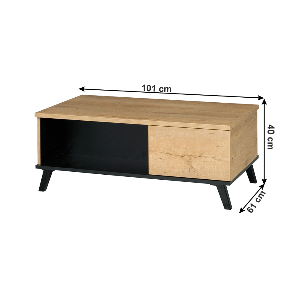 Dohányzóasztal, tölgyfa lefkas/fekete, SIRAN TYP 8