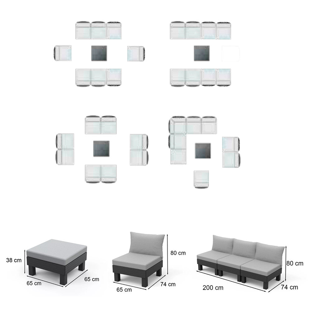 Keter Elements IV 8 személyes kerti bútor garnitúra grafit – tágas, modern és időjárásálló kültéri megoldás a maximális kényelemért
