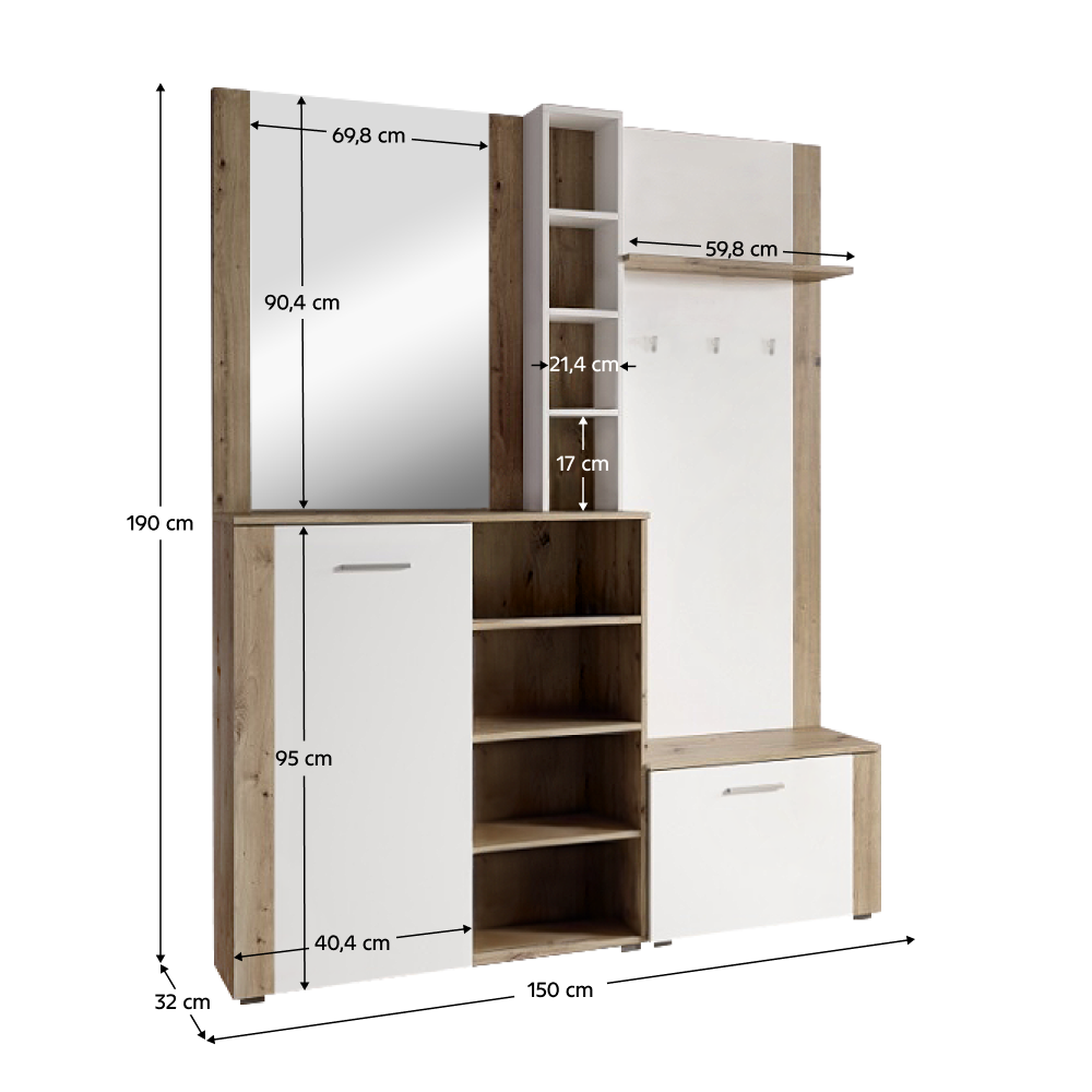 Előszobai készlet, fehér/artisan tölgy, FANDU