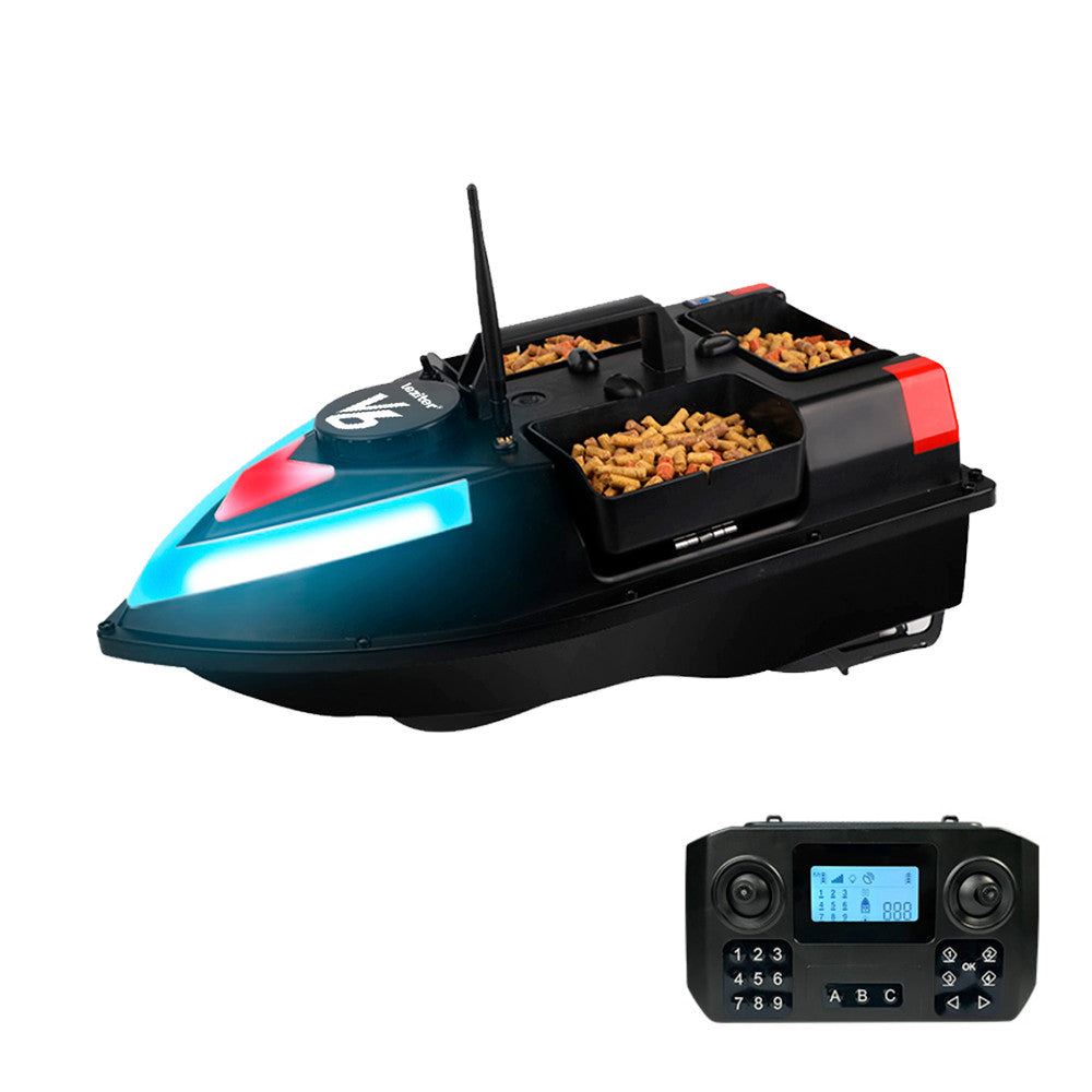 Etetőhajó GPS vezérléssel és 3 tartállyal – fekete színben | 500 m hatótáv, 2 kg kapacitás, LED világítás