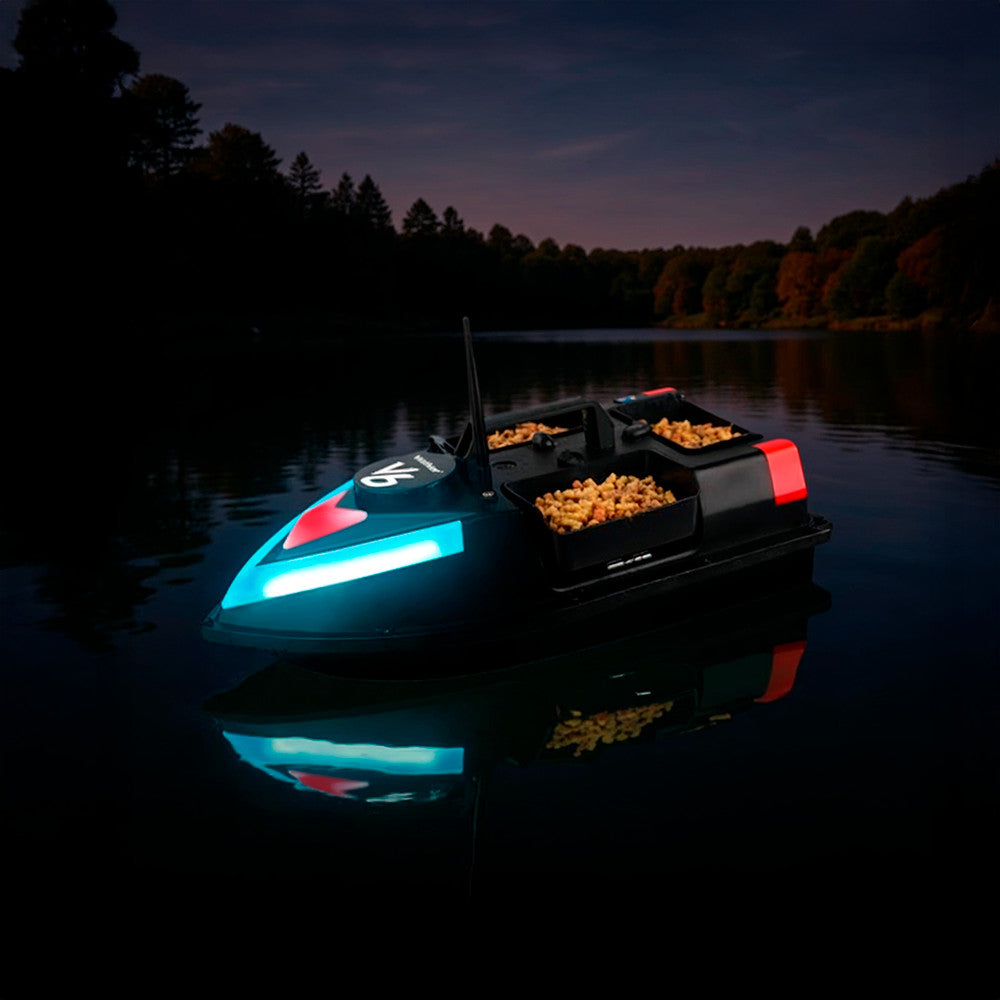 Ez az intelligens, GPS-vezérlésű etetőhajó új szintre emeli a horgászatot. Akár 100 külön GPS-pontot is eltárolhatsz, így minden alkalommal ugyanoda tudod juttatni a csalit – hibátlan pontossággal. A három külön etetőrekesz lehetővé teszi az eltérő helyekre való csalogatóanyag szórást, miközben a 2 kg-os összkapacitás bőven elegendő a nagyobb pecákhoz is.