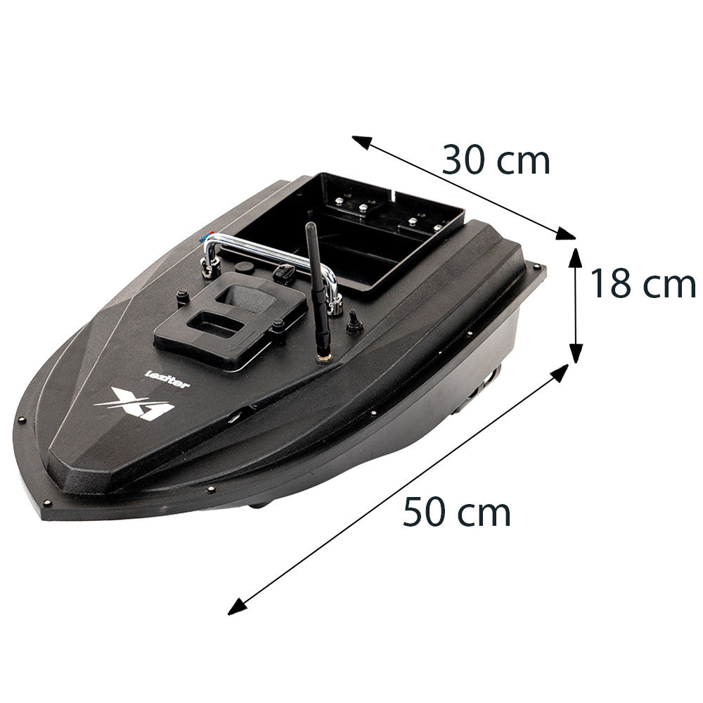 Távoli vezérlési hatótávolság: Az X1 etetőhajó nagy hatótávolsággal rendelkezik, ami lehetővé teszi, hogy a parttól messzebb eső pontokat is könnyedén elérjük vele. Ez a tulajdonság különösen előnyös mélyebb vizeken vagy olyan helyeken, ahol a halak messzebb találhatók, így növelve a horgászat hatékonyságát.