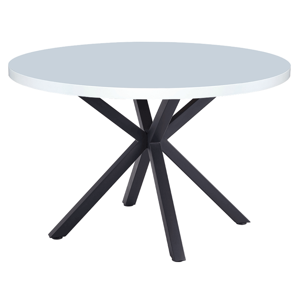 Étkezőasztal, fehér matt/fekete, átmérő 120 cm, MEDOR