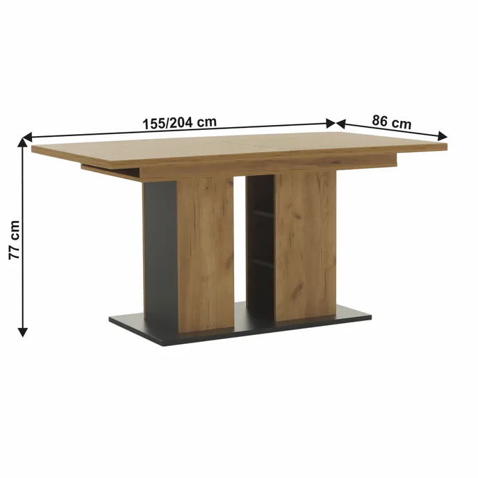 Étkezőasztal, tölgy craft arany/grafit szürke, 155-204x86 cm, FIDEL