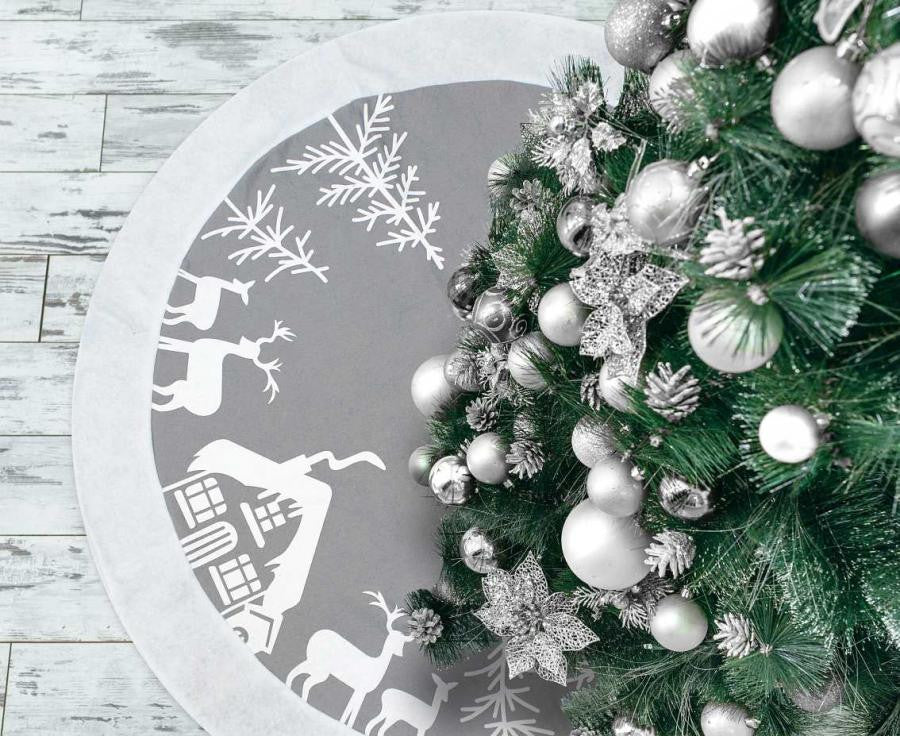 Ezüst Reindeer Karácsonyfa szoknya, alátét
