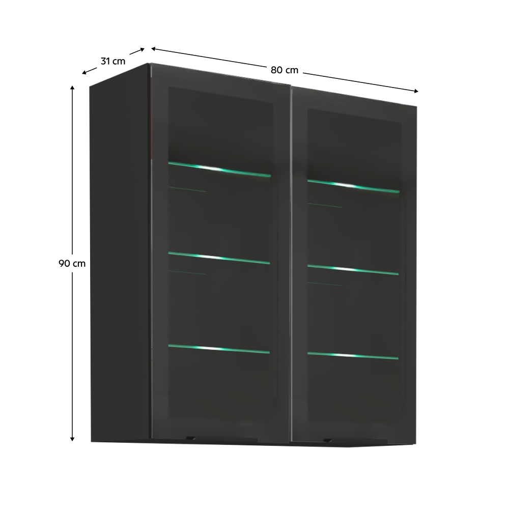Felső szekrény, fekete, ARAKA/MENZO/SIBER 80 GS-90 2F