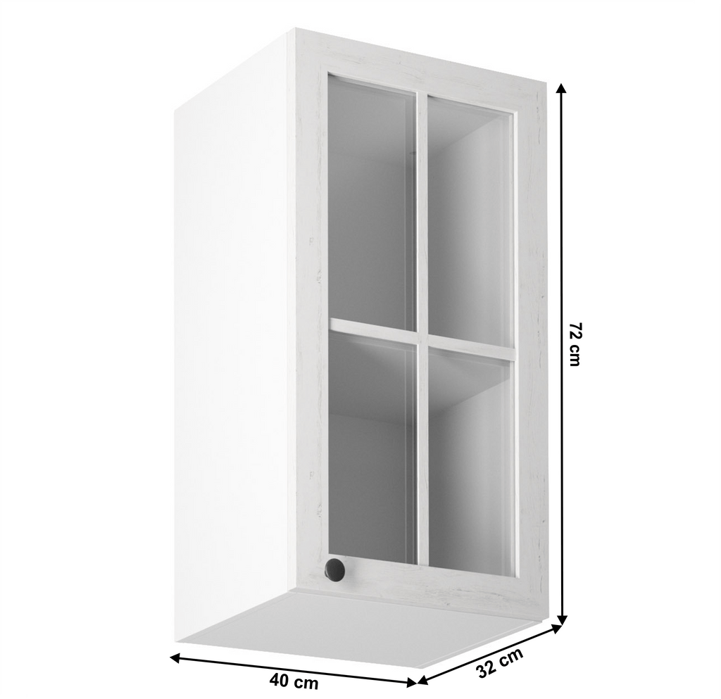 Felsőszekrény üveggel G40S, jobbos, fehér/sosna andersen, PROVANCE