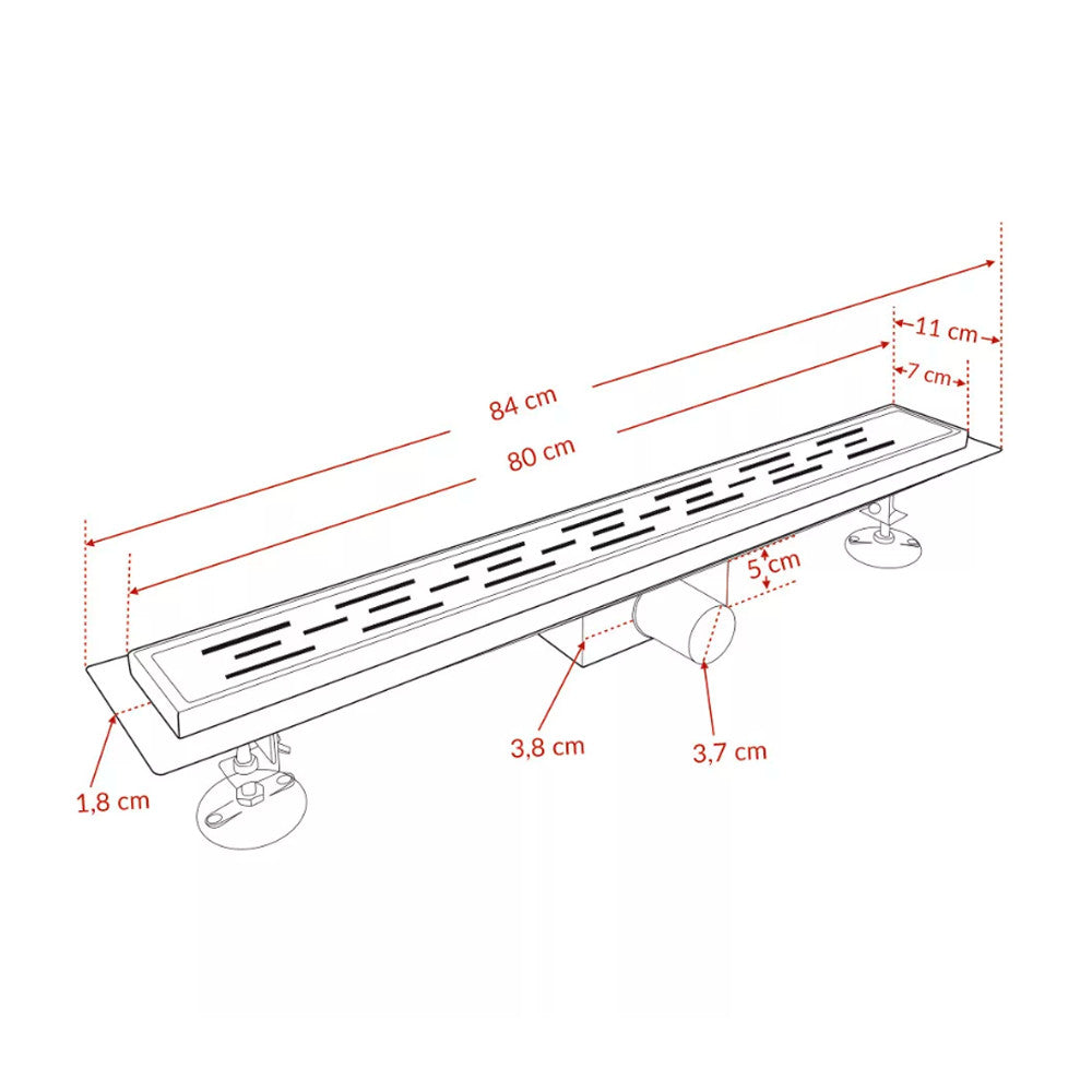 Acél alapteset szigetelő peremmel van ellátva. A termék csiszolt fényes ráccsal van ellátva. Alacsony beépítésű, közvetlenül zuhanyajtó alá vagy fal mellé építhető. Sav és lúgálló ami szintén hatalmas előny takarítás szempontjából. , ugyanis ennek a tulajdonságának köszönhetően nem roncsolódik erős tisztítószerek használatakor. A szifon a csomag részét képzi.