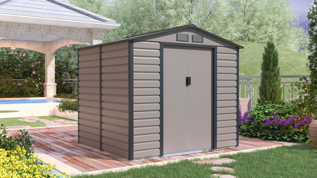 A szilárd horganyzott kerethez rögzítse a horganyzott, porszórással bevont acél lemezt, mely ellenáll a rossz időjárásnak. A csomag tartalmaz ajtókilincseket is, mely segítsévél távol tarthatja a tárolótól a hívatlan vendégeket is.