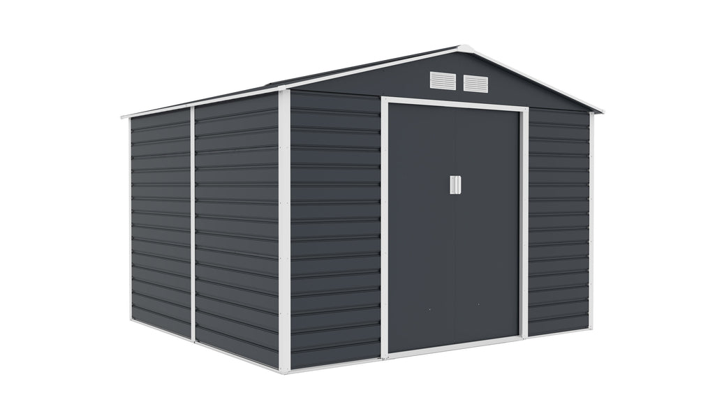 A szilárd horganyzott kerethez rögzítse a horganyzott, porszórással bevont acél lemezt, mely ellenáll a rossz időjárásnak. A csomag tartalmaz ajtókilincseket is, mely segítsévél távol tarthatja a tárolótól a hívatlan vendégeket is.