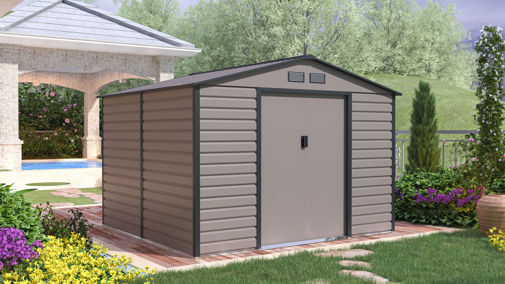 A szilárd horganyzott kerethez rögzítse a horganyzott, porszórással bevont acél lemezt, mely ellenáll a rossz időjárásnak. A csomag tartalmaz ajtókilincseket is, mely segítsévél távol tarthatja a tárolótól a hívatlan vendégeket is.