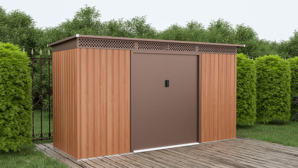 Horganyzással és porszórás bevonattal védve vannak a külső valak és a kerti tároló tetője is.