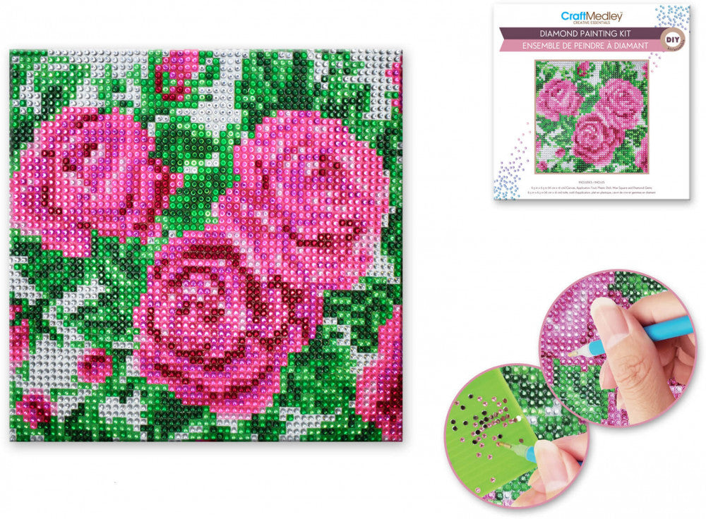 Gyémántfestés szett, rózsa. Készíts gyönyörû gyémántképet ezzel a készlettel. A készlet mindent tartalmaz, amire a kép elkészítéséhez szükség van. Kör alakú kövekkel.