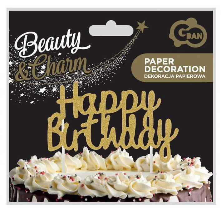 Happy Birthday Gold torta dekoráció, J-MLG131086