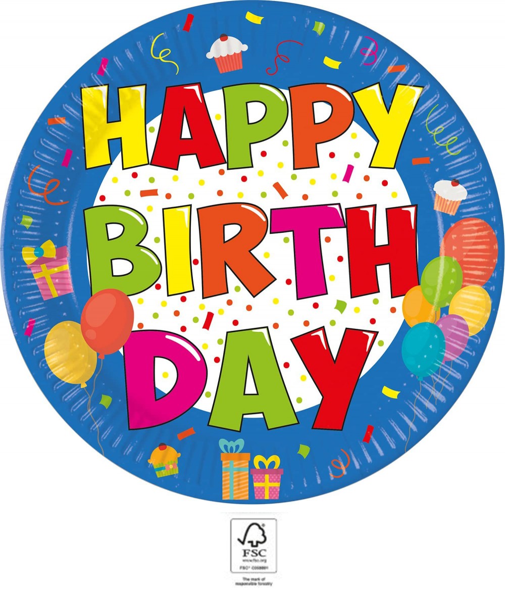 Happy Birthday papírtányér 8 db-os 20 cm FSC
