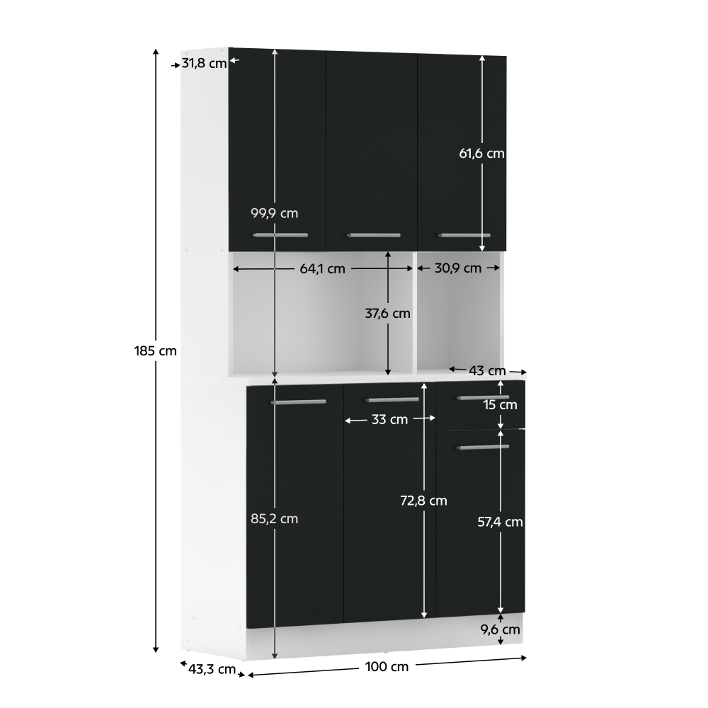 Méretek (SzxMéxMa): 100x43,3x185 cm